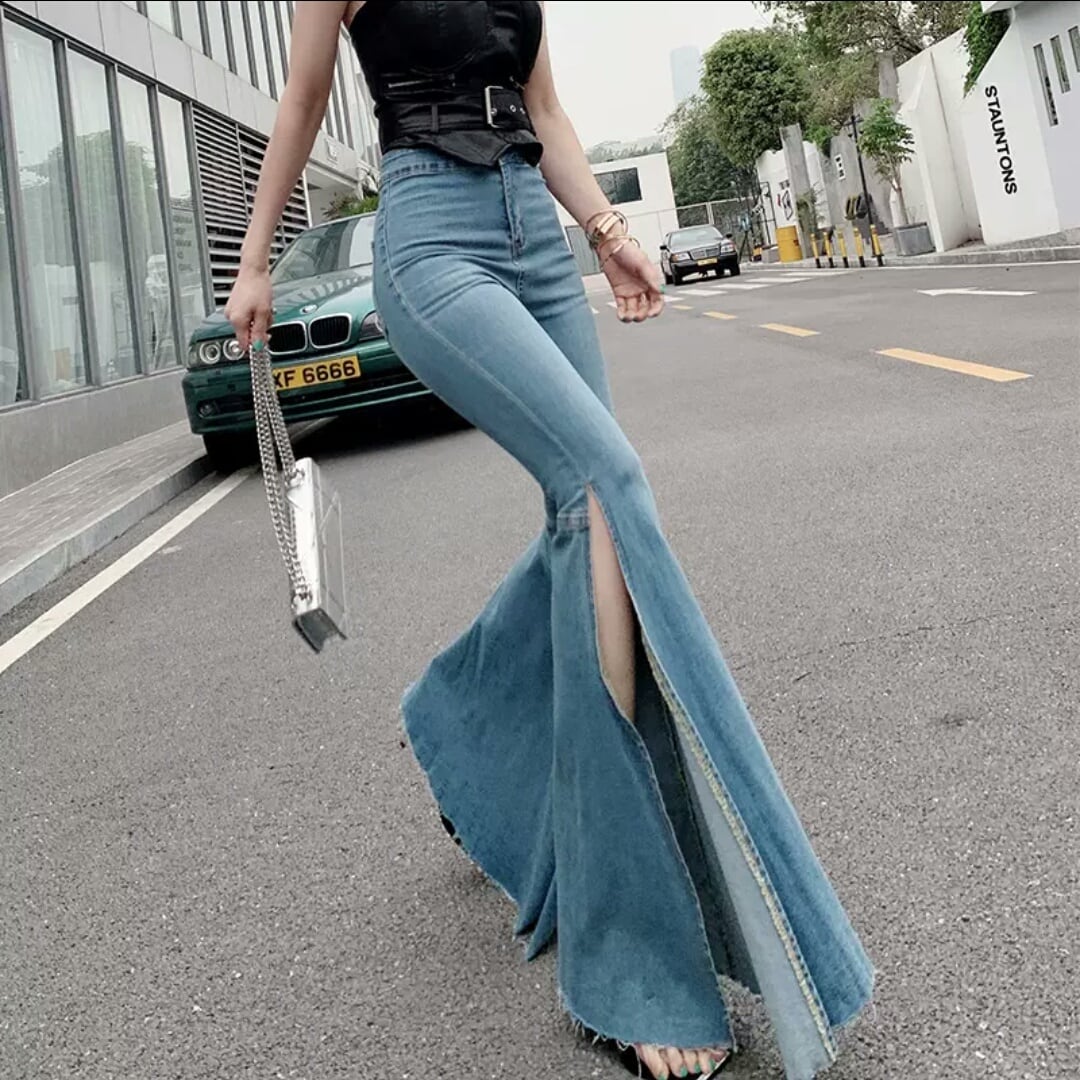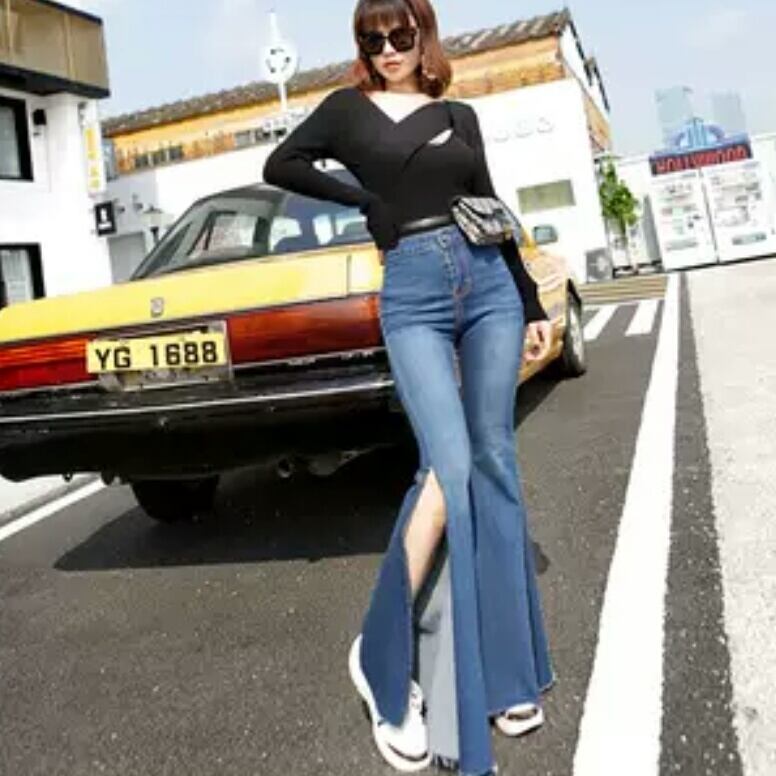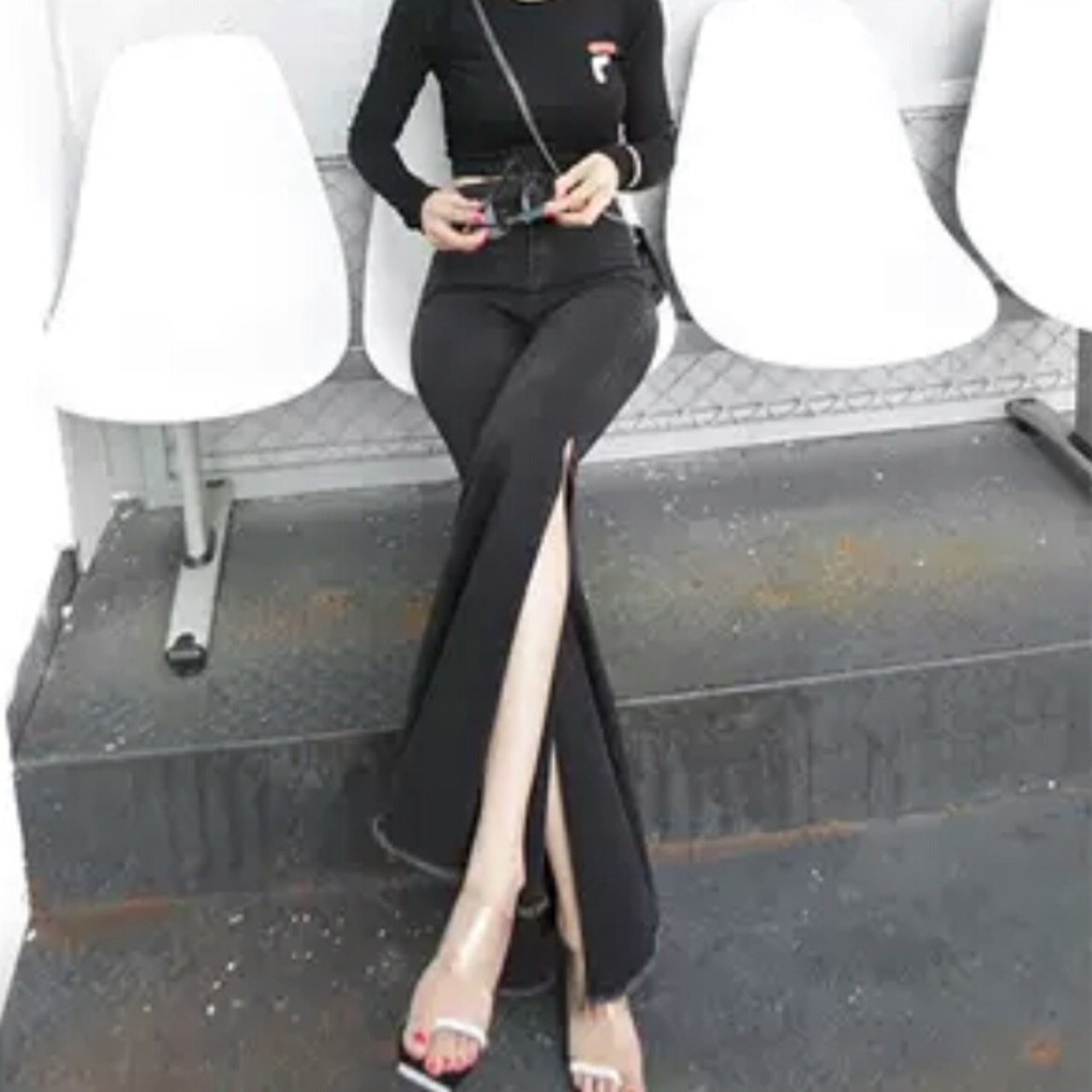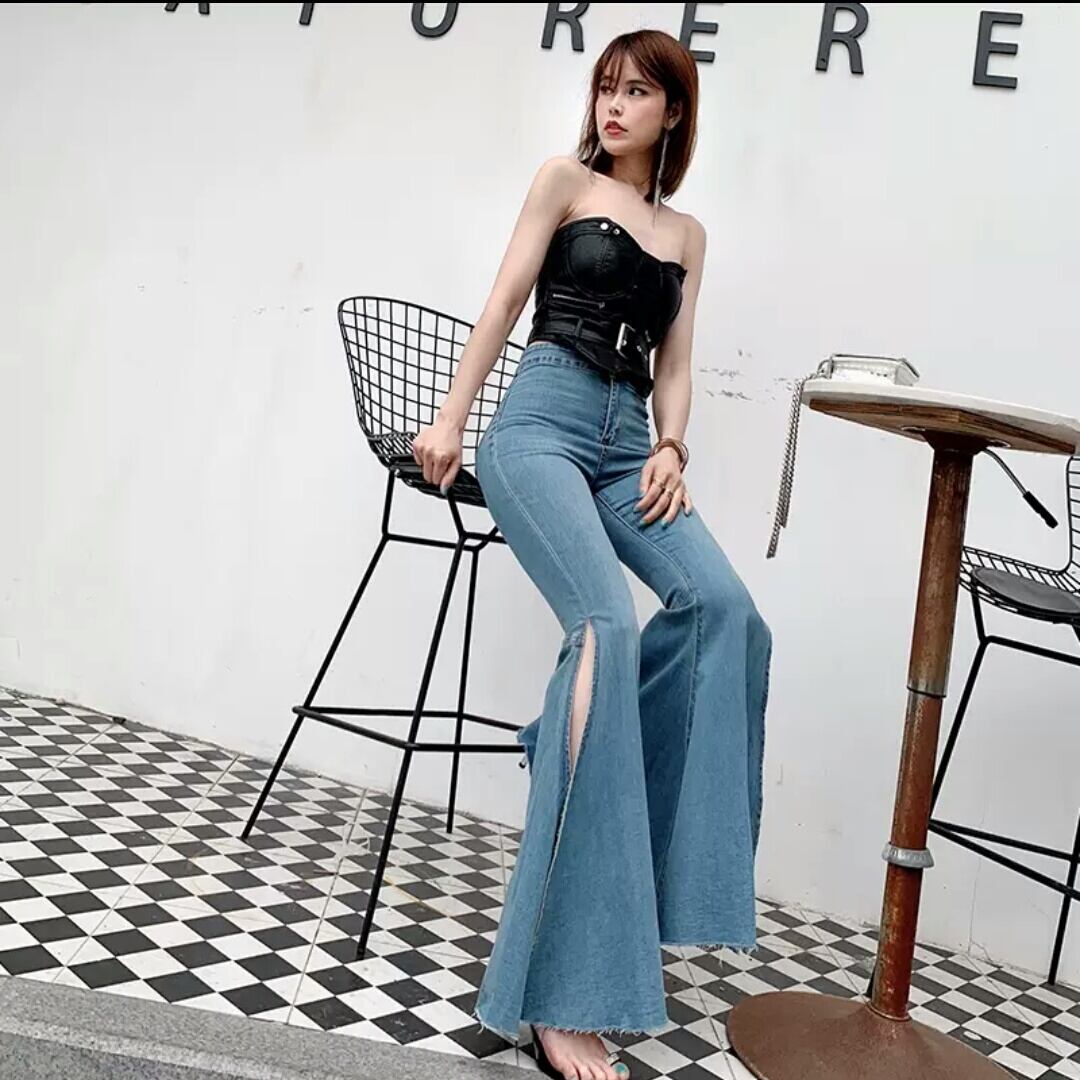 全3色 サイドスリット ハイウエスト ビックフレア パンツ ジーンズ 大人 可愛い キレイめ セクシー カジュアル 個性的 お出かけ お買い物 デート 女子会 春 夏 通学 学生 通勤 韓国ファッション