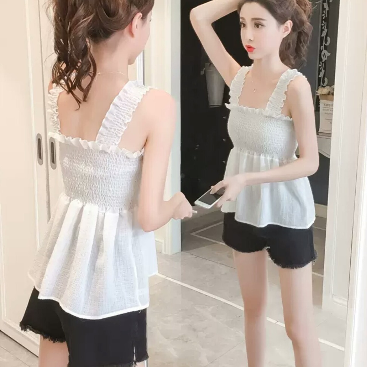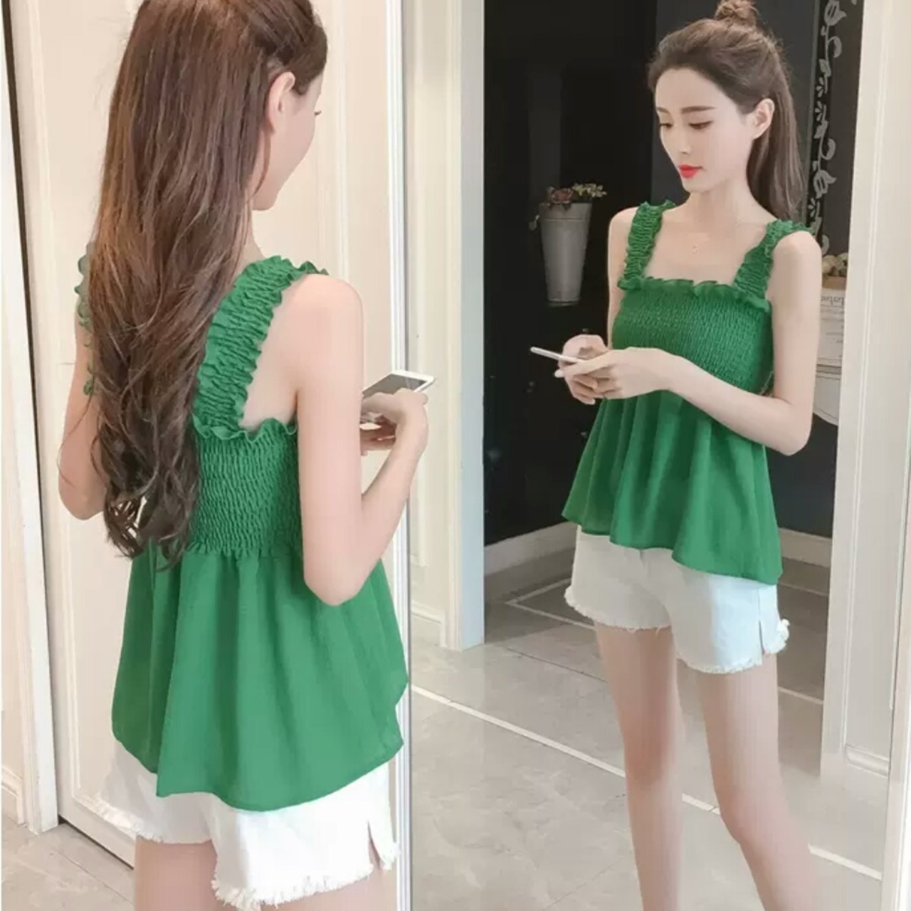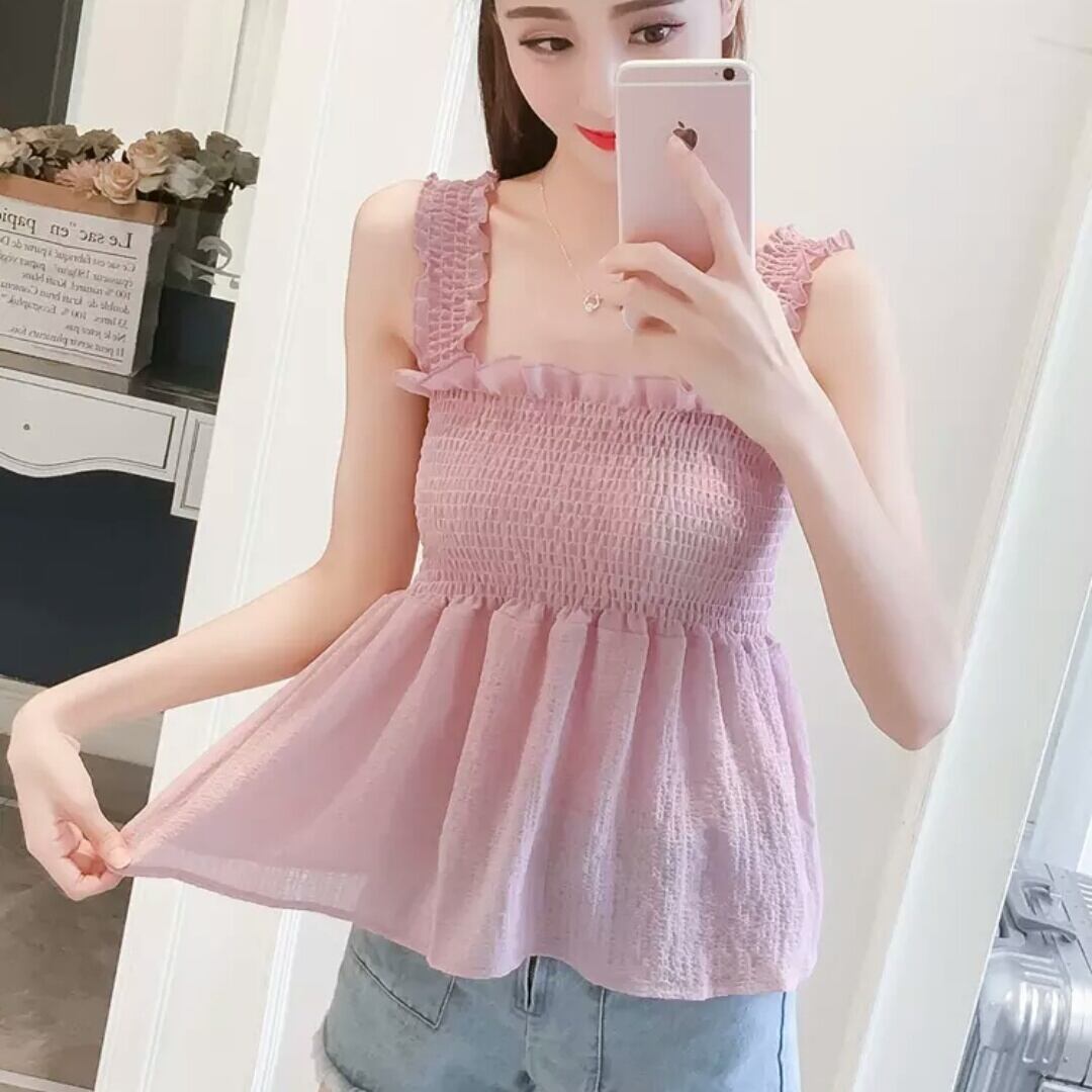 全5色 ノースリーブ フリル シャツ ブラウス キャミソール チェック 無地 大人 可愛い キレイめ カジュアル 上品 お出かけ お買い物 デート 女子会 春 夏 通学 学生 通勤 韓国ファッション