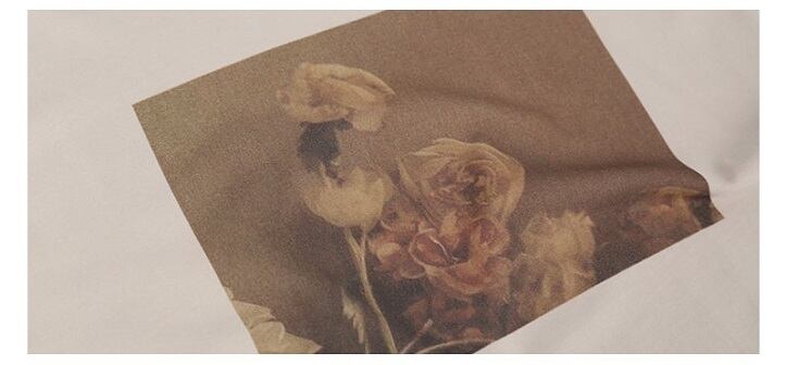 抑えた色合いの花柄プリントがお洒落な長袖Tシャツ。