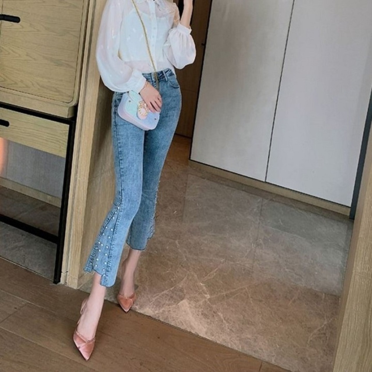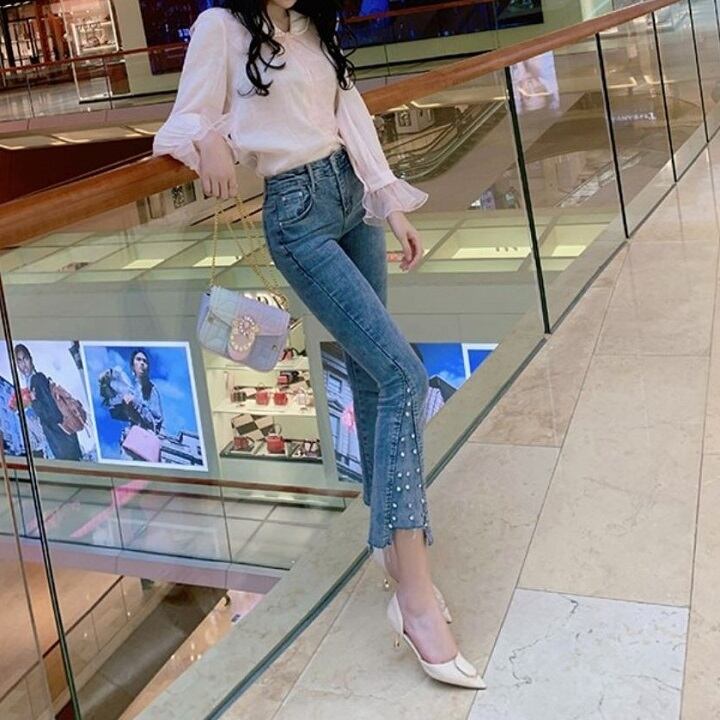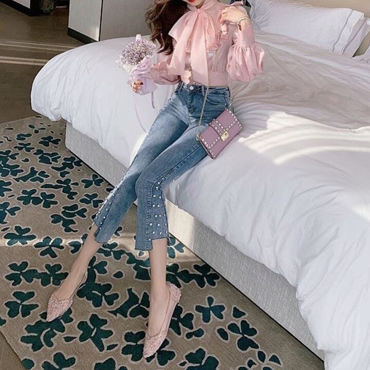デニムパンツ スキニーパンツ フレアパンツ 9分丈 カジュアル お出かけ レジャー デイリー 普段着