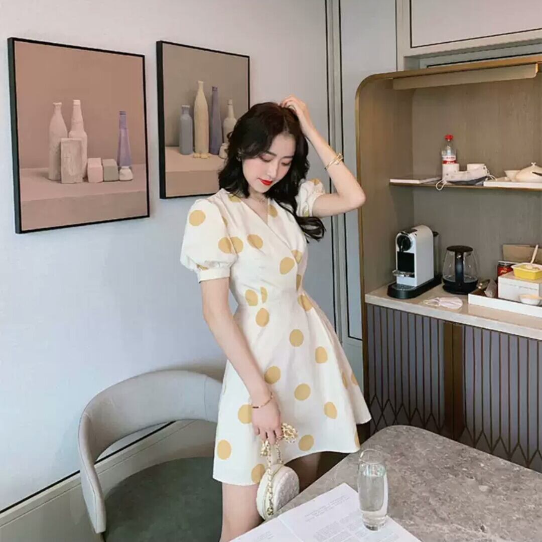ドット柄 水玉 スリム ショート丈 ミニ丈 ワンピース ドレス 大人 可愛い キレイめ スタイリッシュ エレガント 上品 お出かけ お買い物 デート 女子会 春 夏 通学 学生 通勤 韓国ファッション