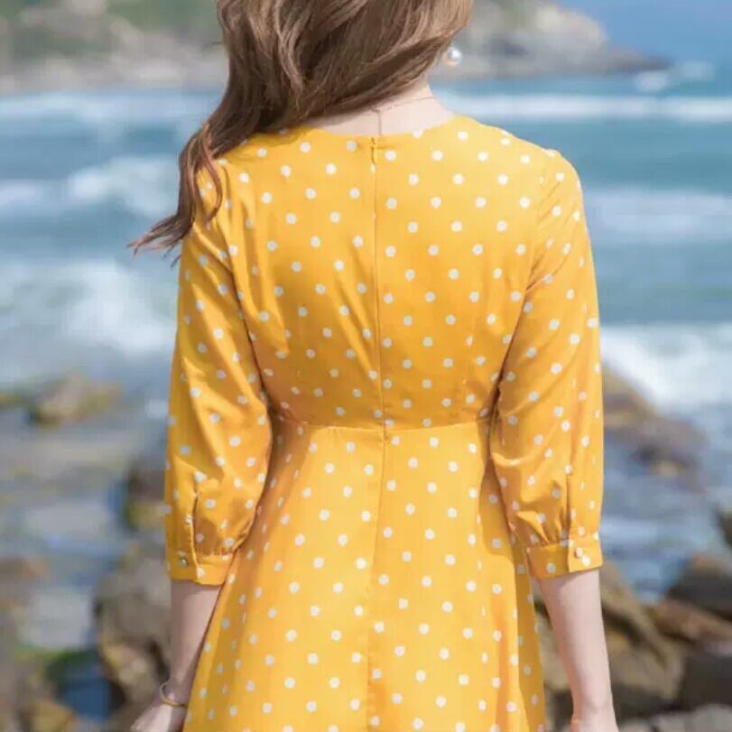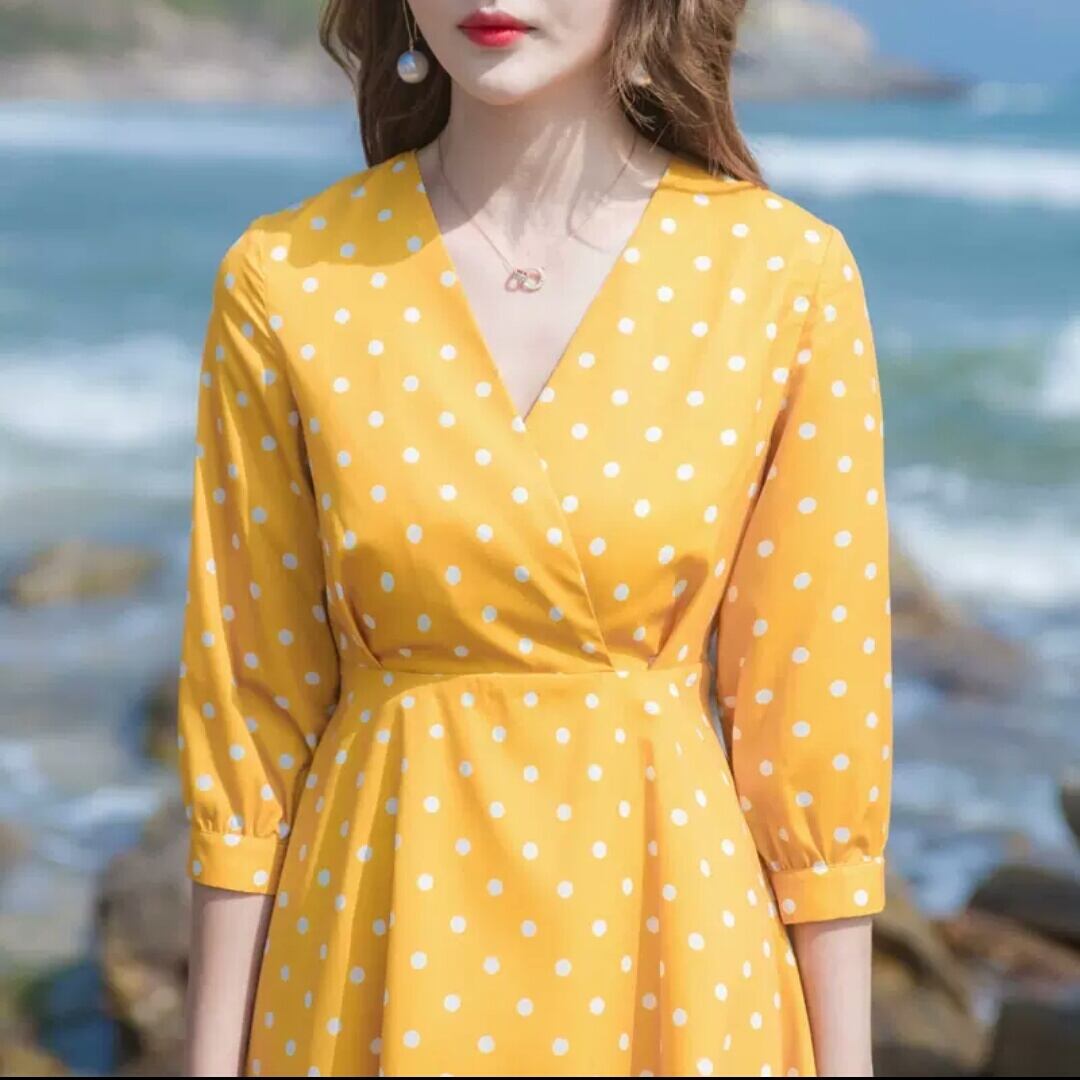 Vネック ドット柄 シフォン ワンピース ショート丈 ミニ丈 大人 可愛い キレイめ カジュアル お出かけ お買い物 デート 女子会 春 夏 通学 学生 通勤 韓国ファッション