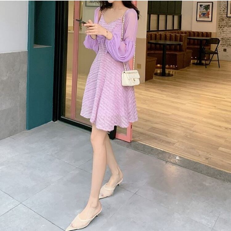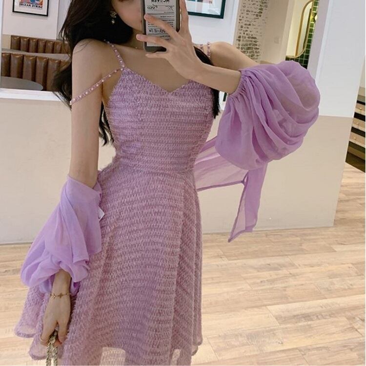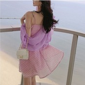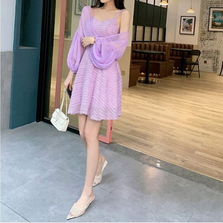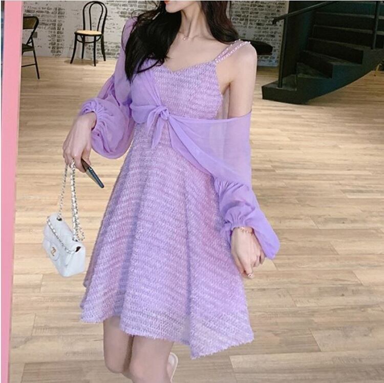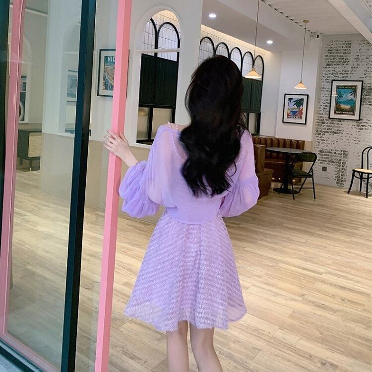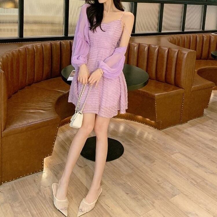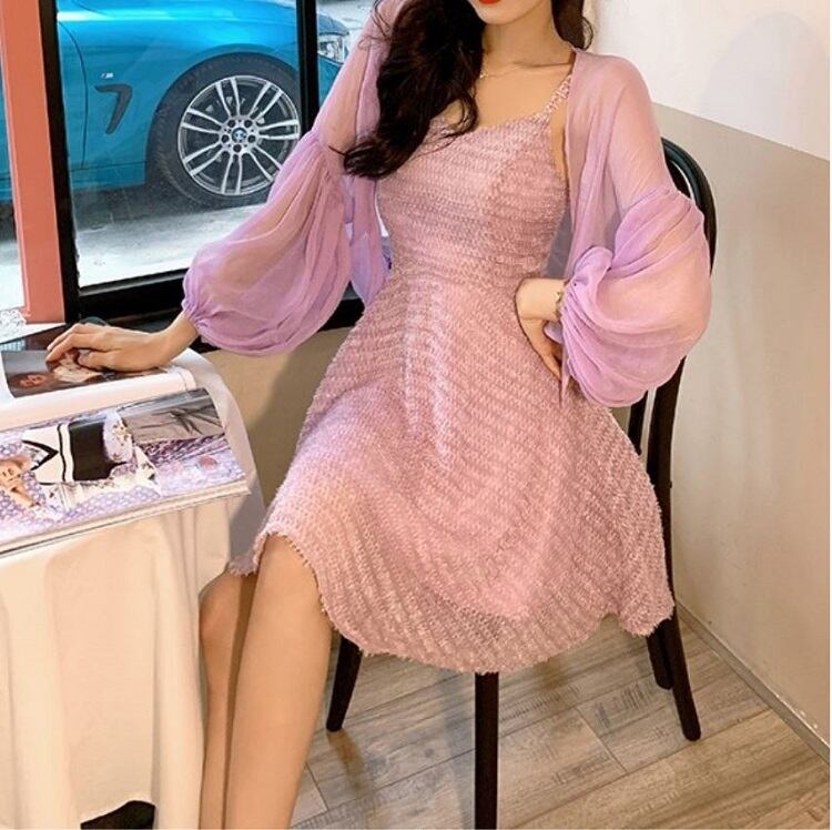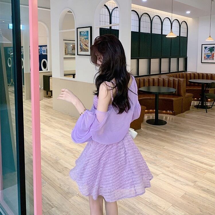 ショートジャケット ボレロ カーディガン シフォン 長袖 ドロップショルダー 透け感 エレガント お出かけ リゾート パープル