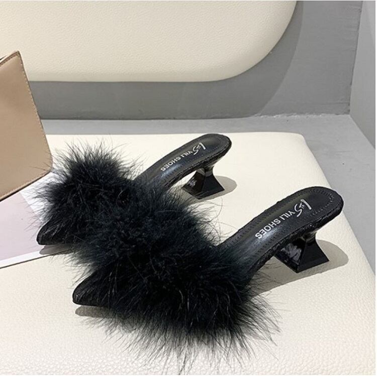 全2色 ファーサンダル ヒールサンダル ミュール 5cm PU エレガント フェミニン パーティ カジュアル ポインテッドトゥ