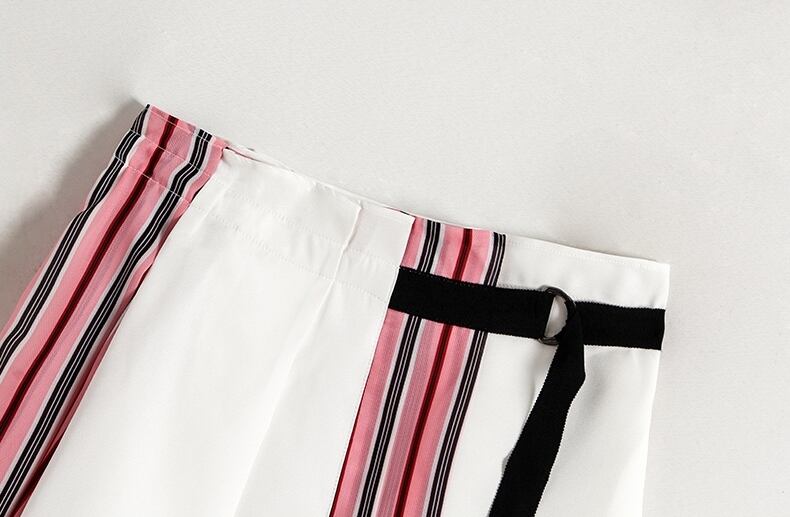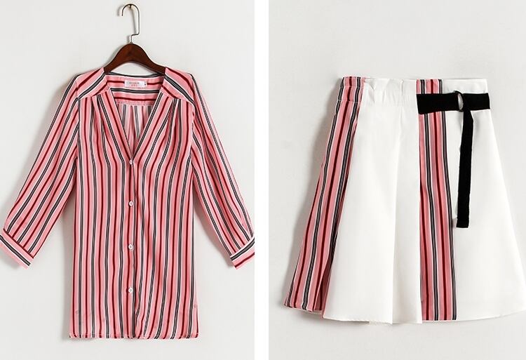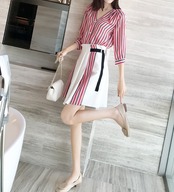 トレンドのストライプ柄がおしゃれなシャツとミニ丈スカートの2点セットです。