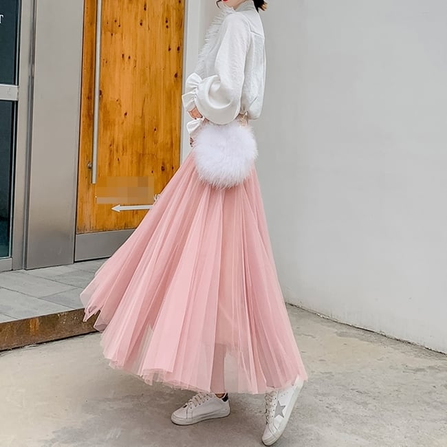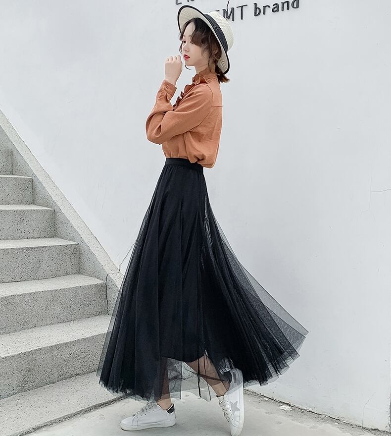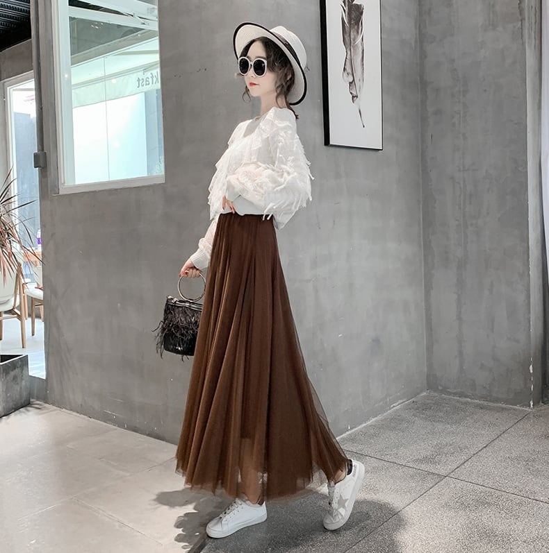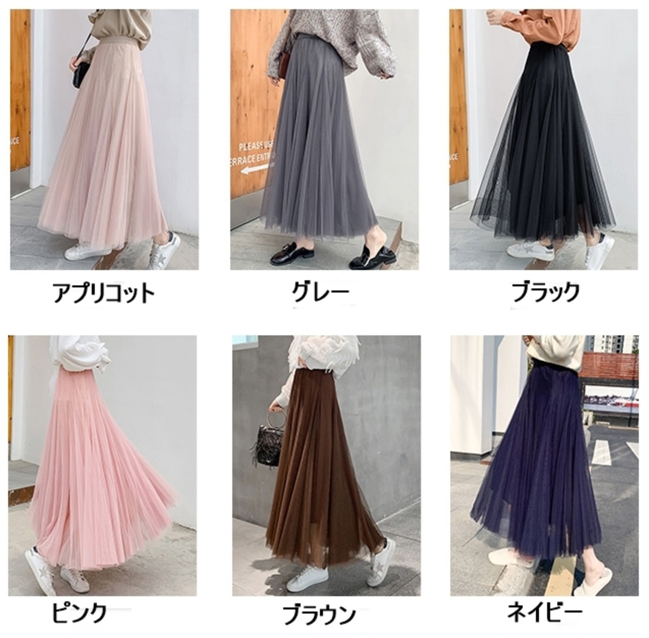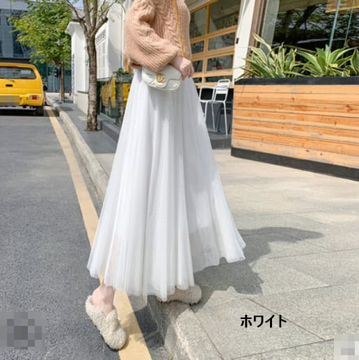 全8色 選べる丈 スカート ボトムス ロング丈 ミモレ丈 ミントグリーン チュール フレア 可愛い ガーリー ハイウエスト シースルー カジュアル きれいめ 上品 デート お出かけ 春 夏