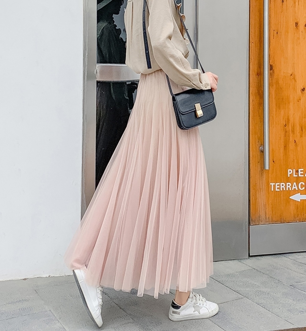 上品でフェミニンな印象のチュールスカートです。