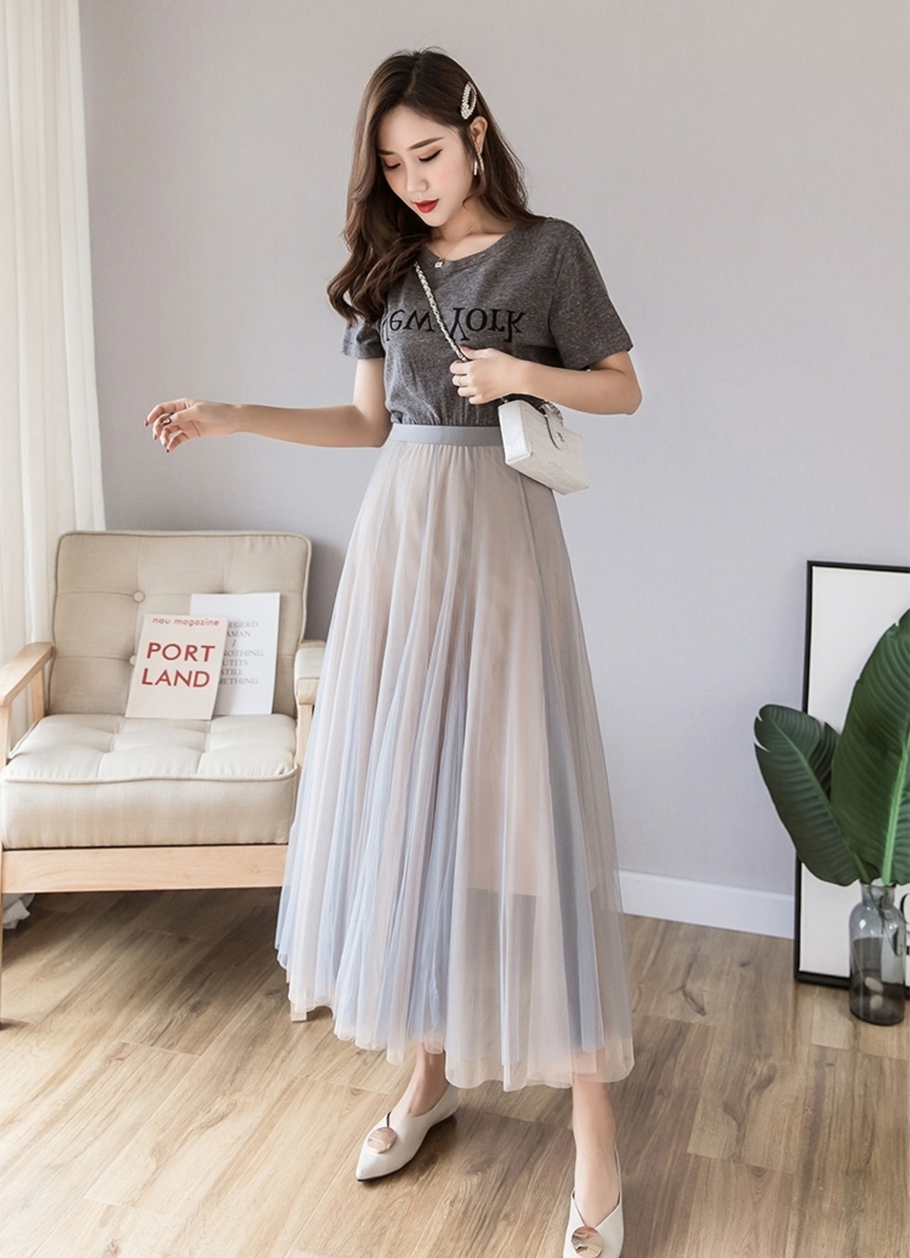 ふんわり広がるチュールが女性らしさを演出しています。