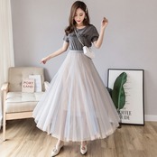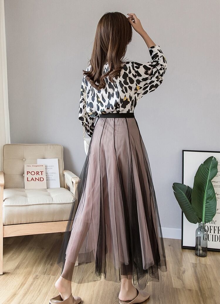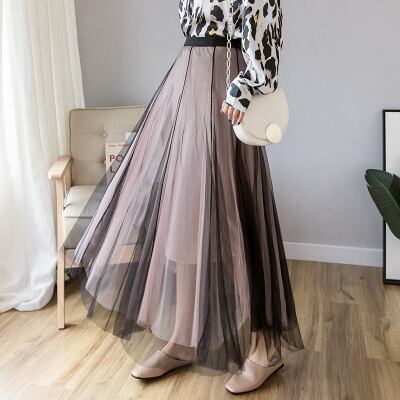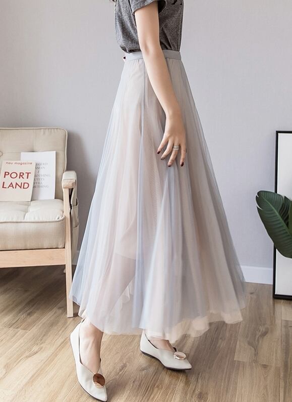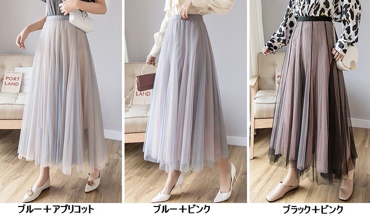 全3色 スカート ボトムス ロング丈 チュール フレア 可愛い ガーリー ハイウエスト バイカラー シースルー カジュアル きれいめ 上品 デート お出かけ 春 夏