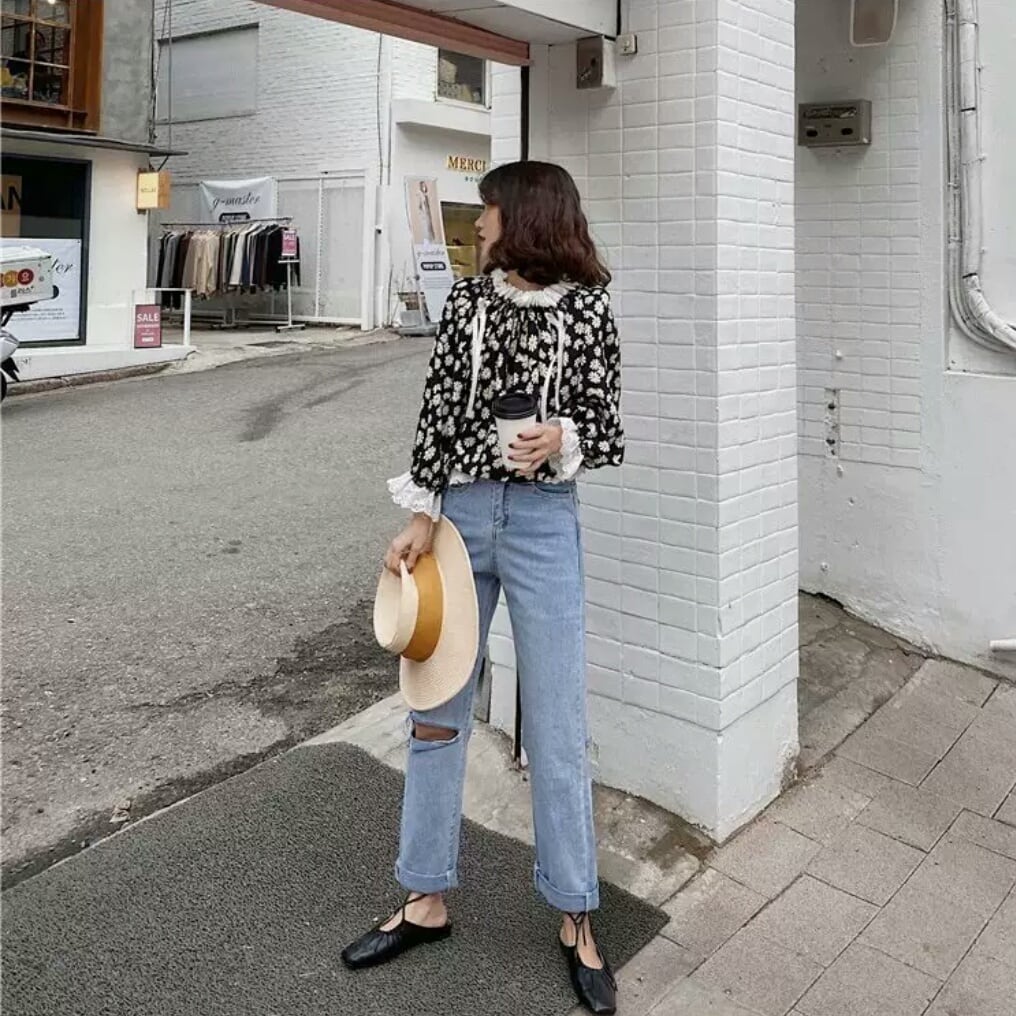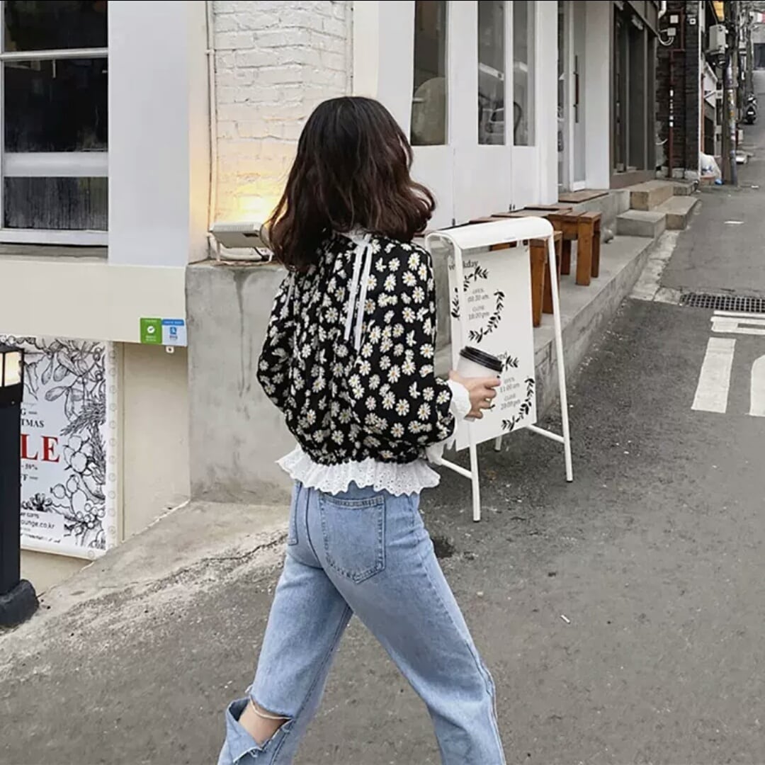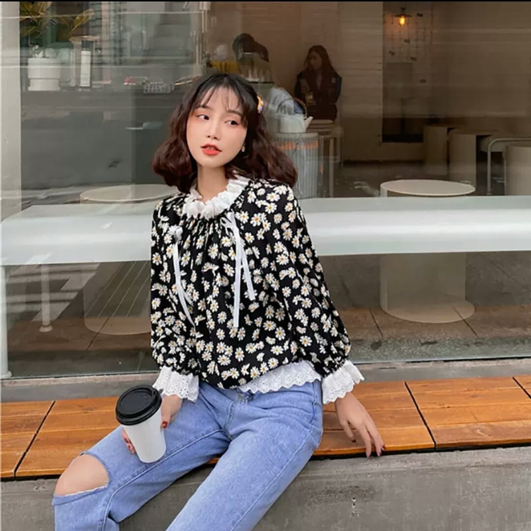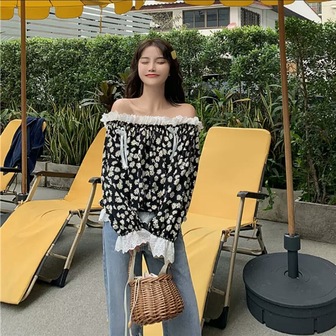 花柄 オフショルダー シャツ 長袖 レース デイジー 大人 可愛い カジュアル キレイめ お出かけ お買い物 デート 女子会 春 夏 通学 学生 通勤 韓国ファッション