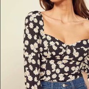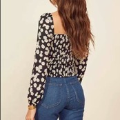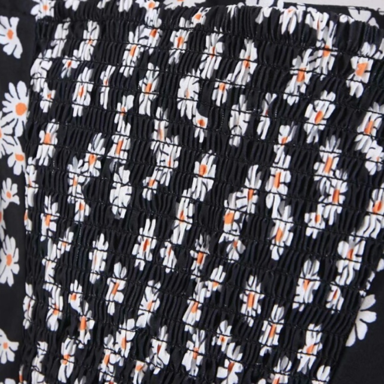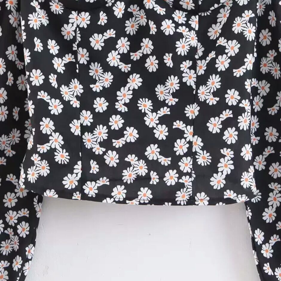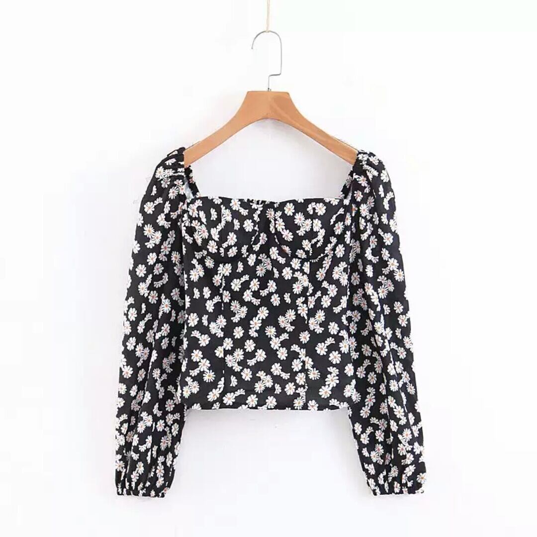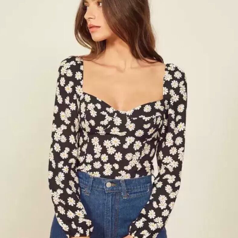 スクエアカラー 花柄 プリント デイジー シャツ 長袖 大人 カジュアル 可愛い キレイめ スタイリッシュ セクシー お出かけ お買い物 デート 女子会 春 夏 通学 学生 通勤 韓国ファッション