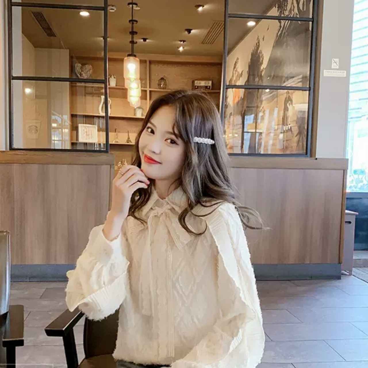 レース 長袖 シャツ リボン 大人 可愛い キレイめ スタイリッシュ カジュアル お出かけ お買い物 デート 女子会 春 夏 通学 学生 通勤 韓国ファッション