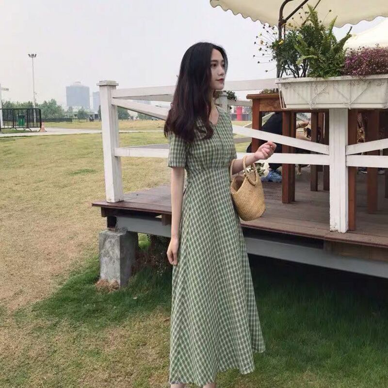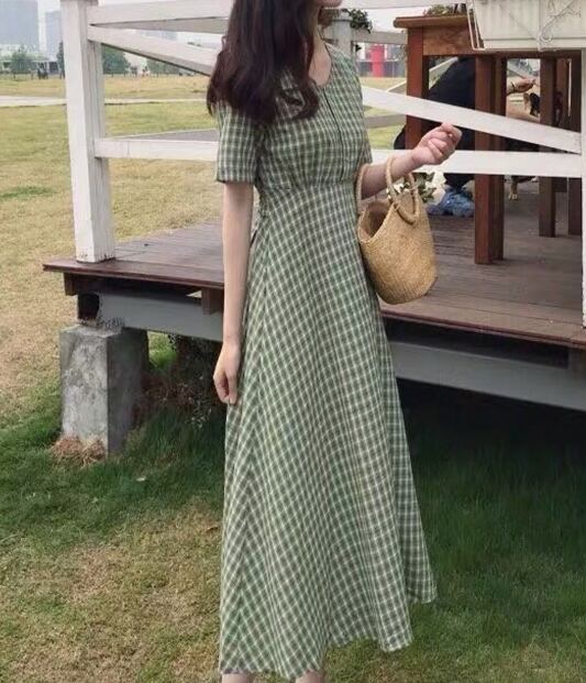 トレンドのチェック柄が大人っぽい印象のロング丈ワンピースです。