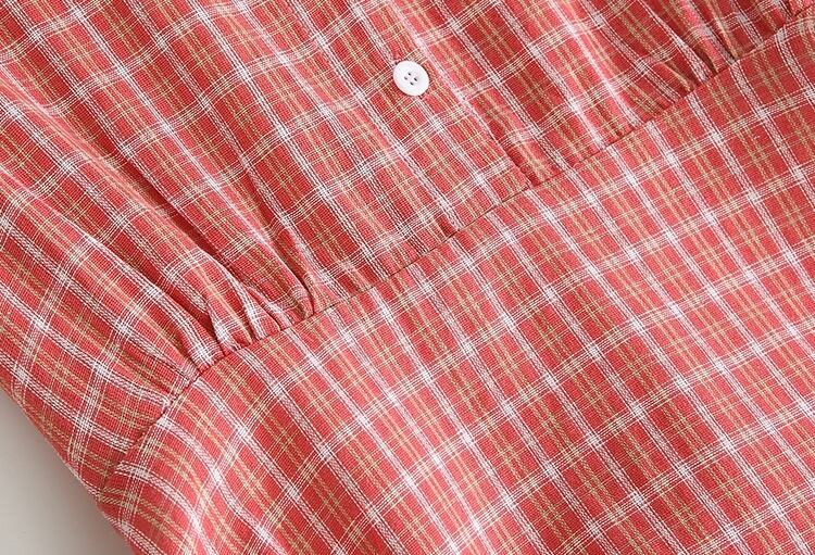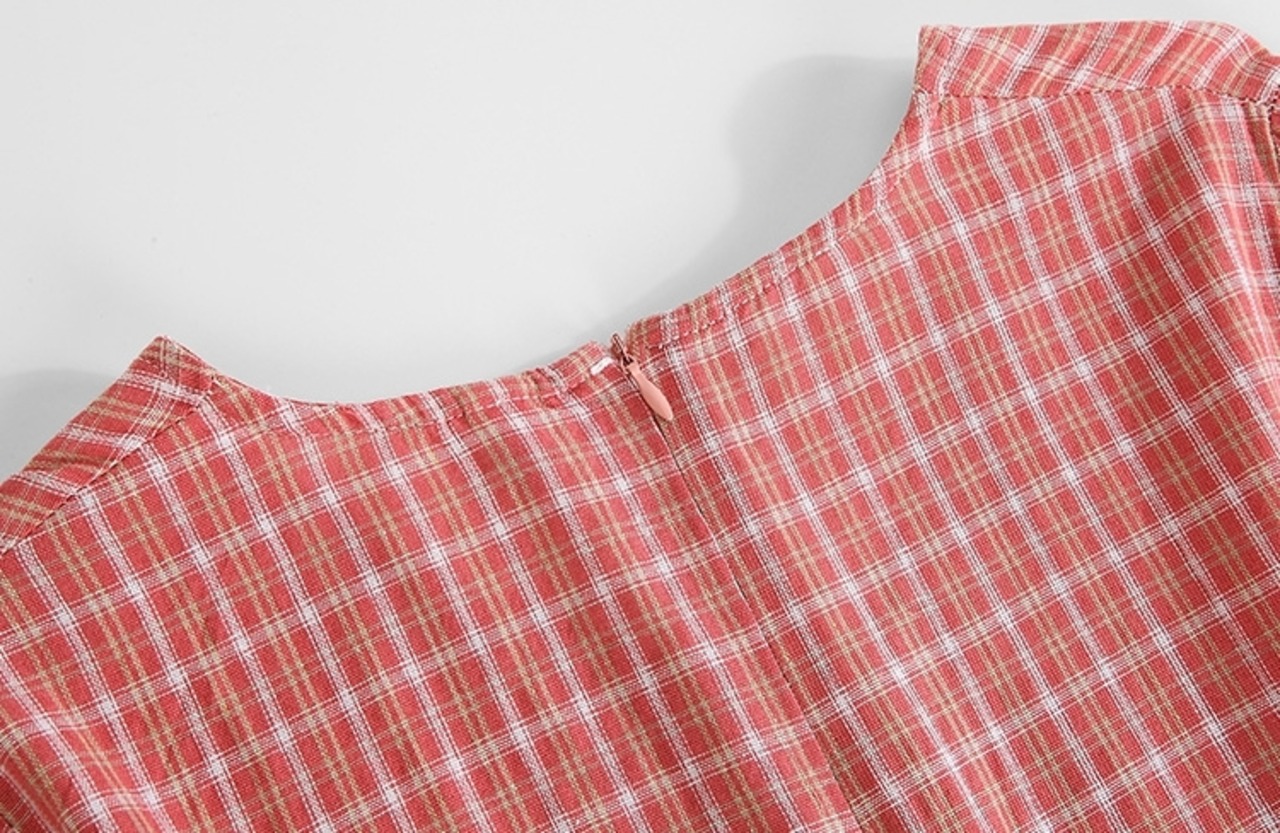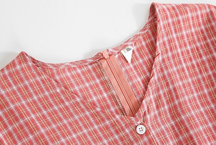 全2色 ワンピース 大きいサイズ チェック柄 バックコンシャス バックリボン フロントボタン Vネック 5分袖 ロング丈 フレア カジュアル デイリー お出かけ 大人可愛い 夏