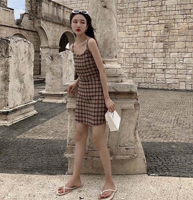 トレンドのチェック柄がおしゃれなキャミソールワンピ—スです。