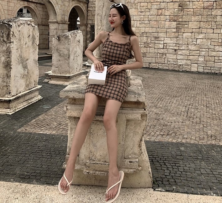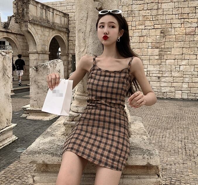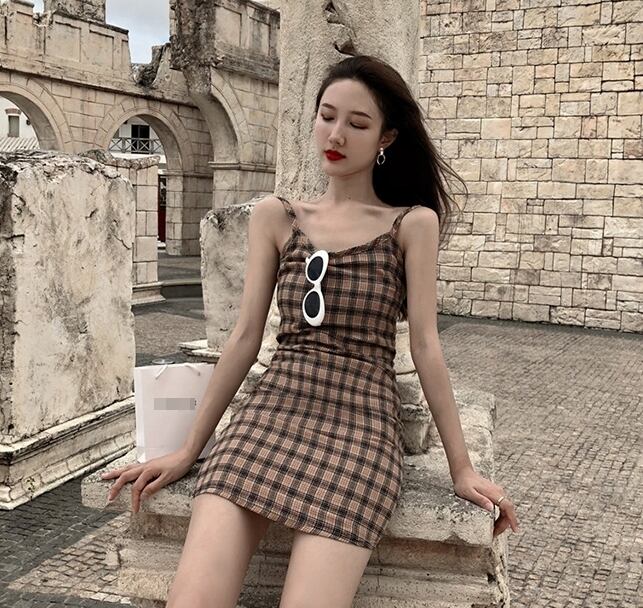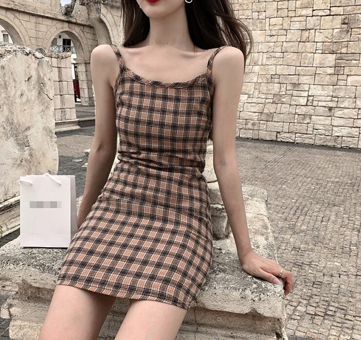 ワンピース チェック柄 キャミソールワンピ ミニ丈 スリム カジュアル デイリー 大人可愛い おしゃれ デート お出かけ 夏