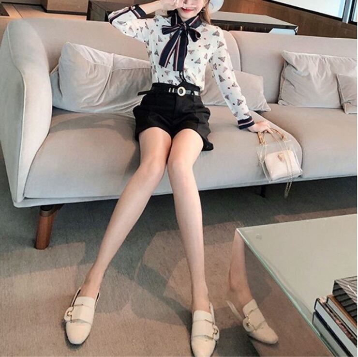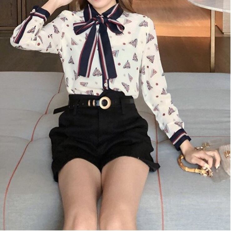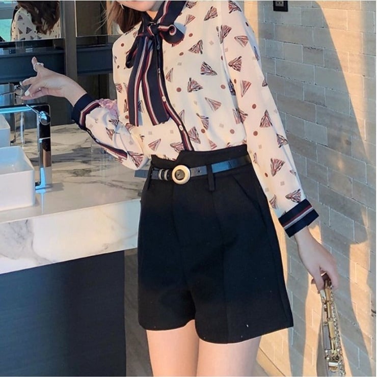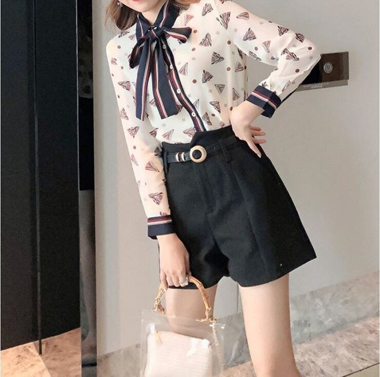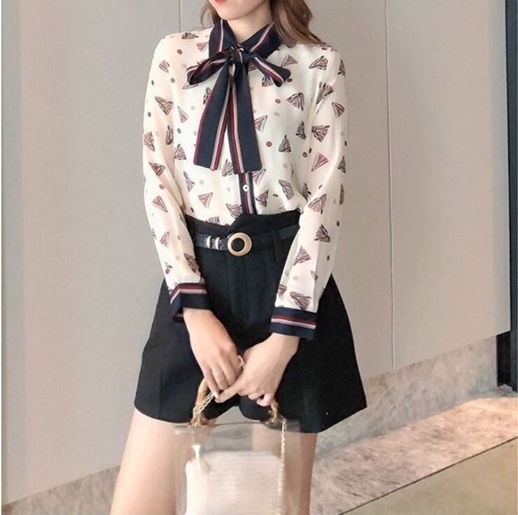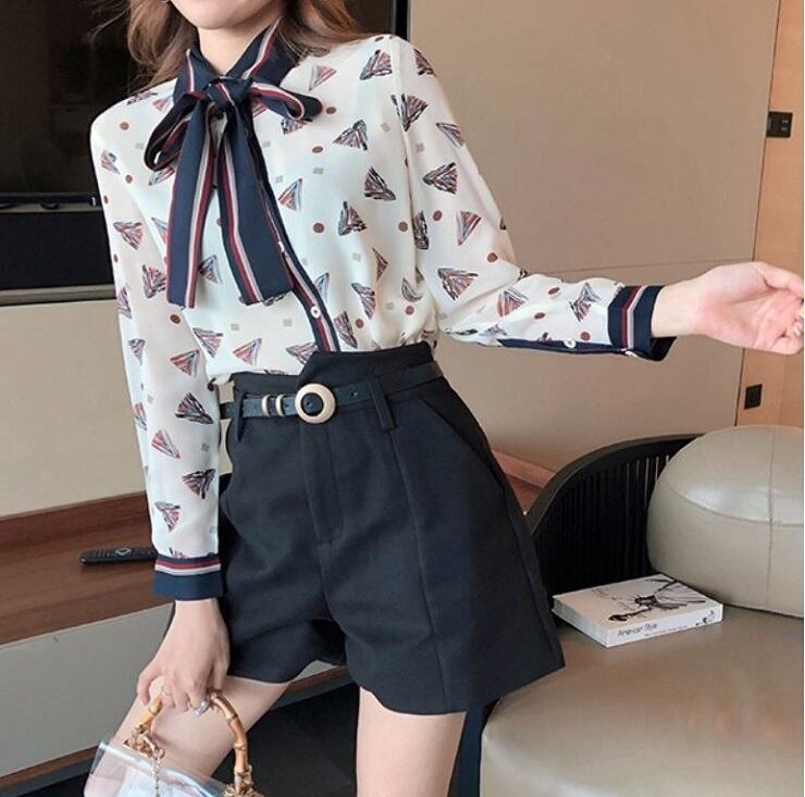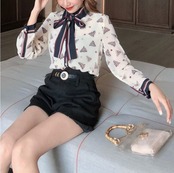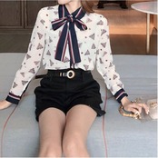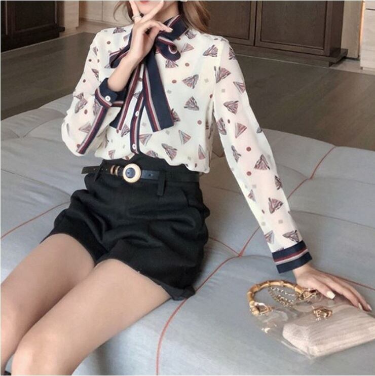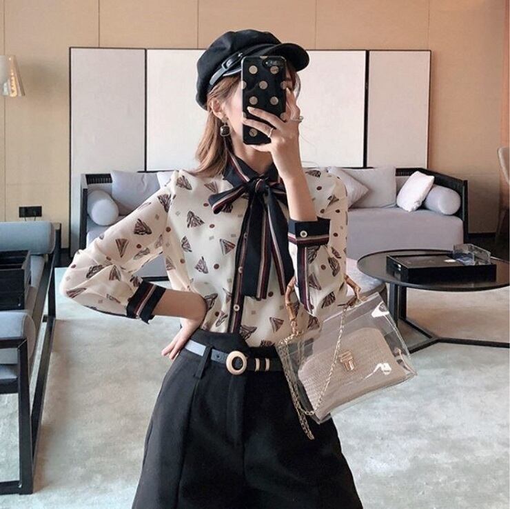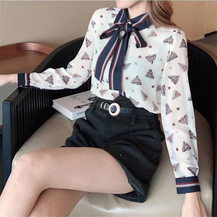 レトロなプリントが可愛いシフォンブラウス。
