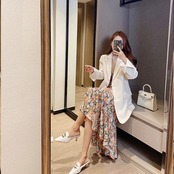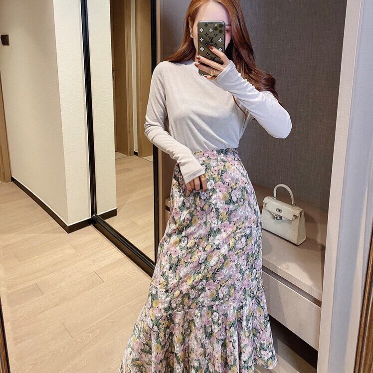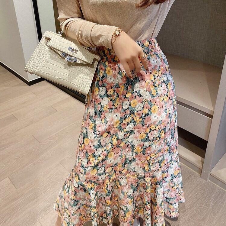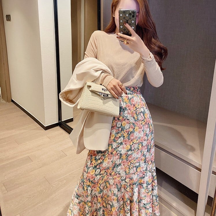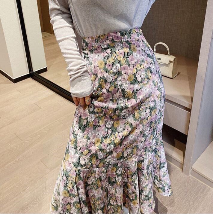 レトロな小花柄が上品なロングスカート。