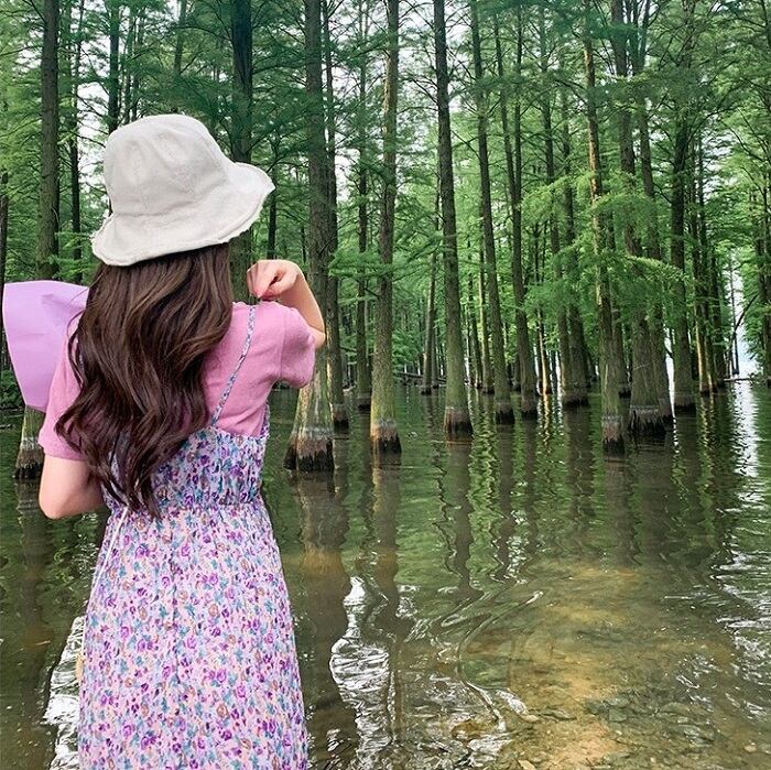 レトロなパープルの小花柄が上品なキャミソールドレス。