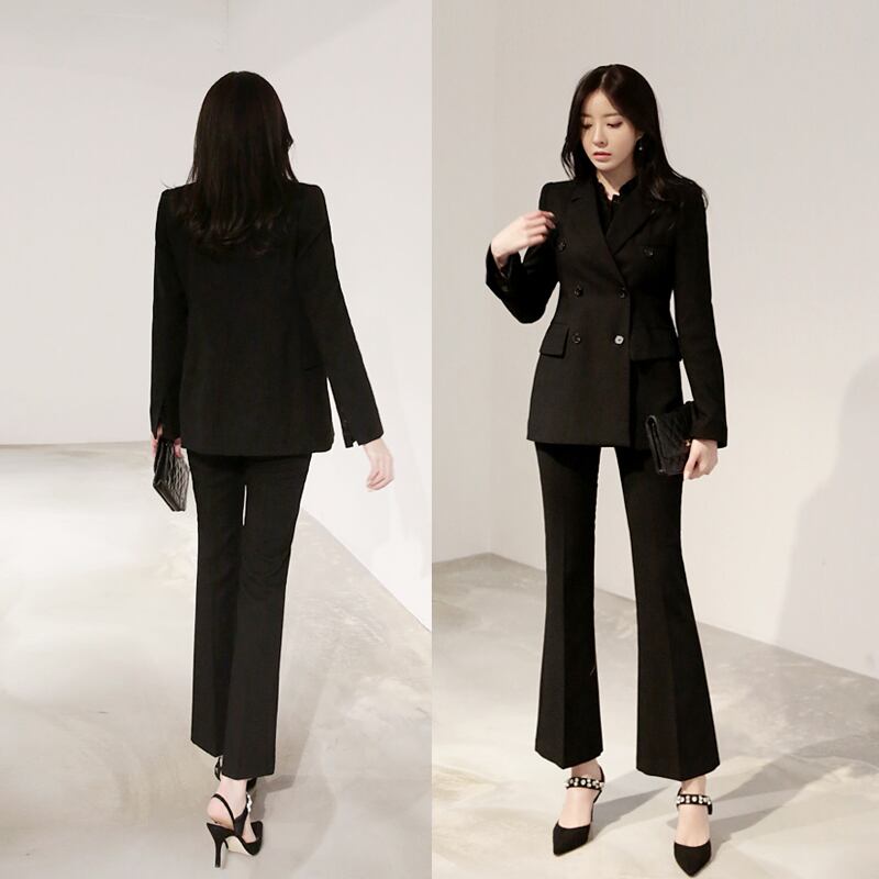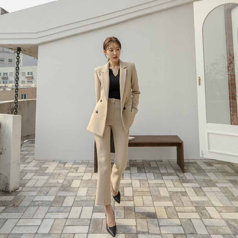 全2色 スーツ セットアップ ツーピース ジャケット パンツ アンクル丈 ベーシック 無地 ハイウエスト スリム カジュアル エレガント 上品 OL 通勤 オフィス ゆったりめ 韓国ファッション 春 夏