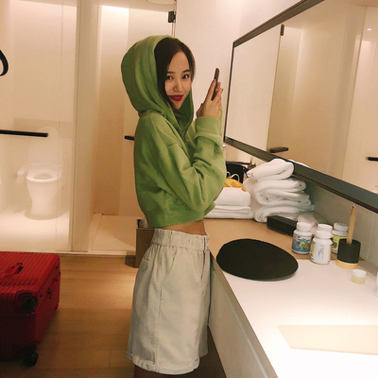 着丈が短めなのでハイウエストのデニムパンツやスカートにも相性が良く、可愛く着こなせます♪