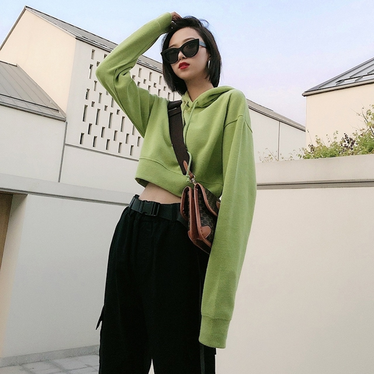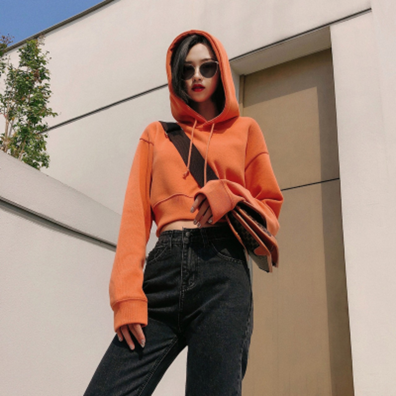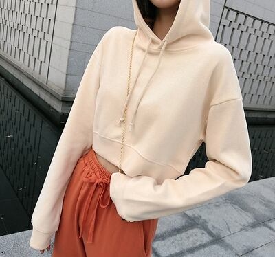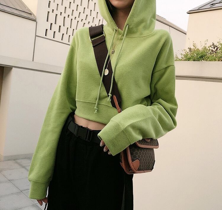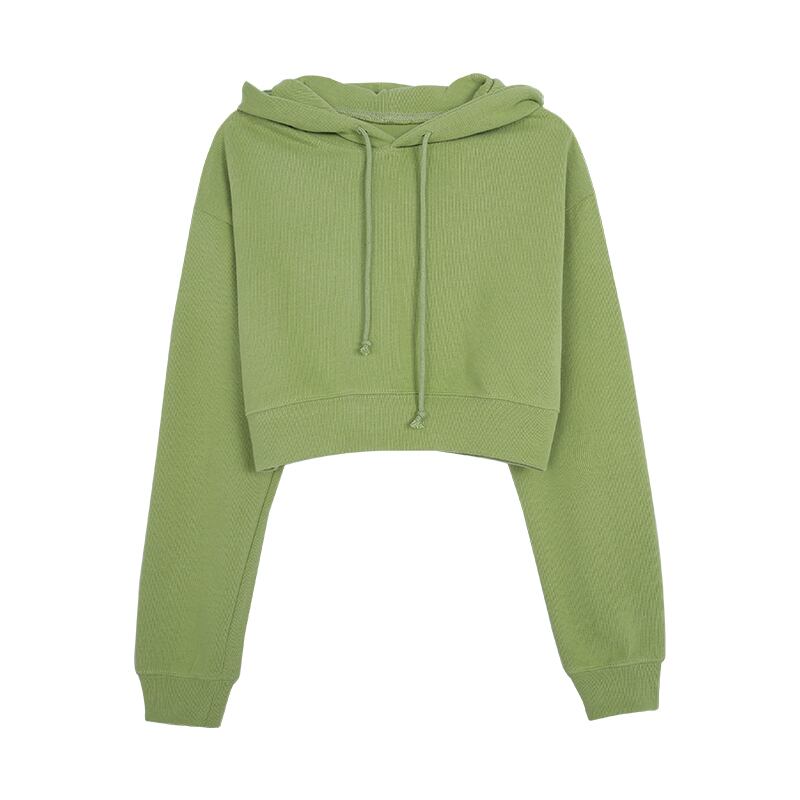 全3色 プルオーバー トレーナー トップス フード付き ショート丈 カジュアル 無地 デイリー ロングスリーブ シンプル ベーシック ゆったり お出かけ 長袖 春