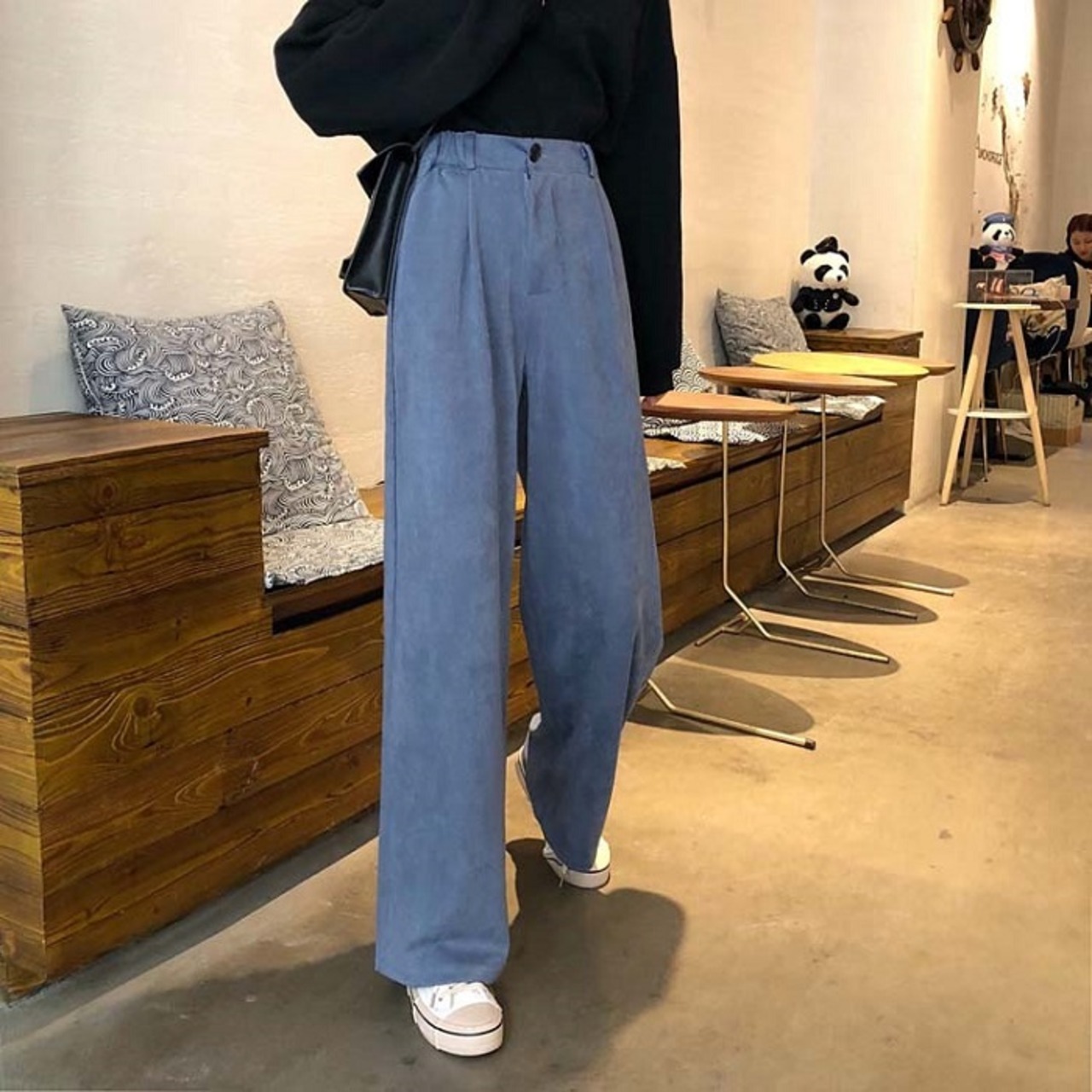 全2色 カジュアルパンツ ワイドパンツ ハイウエスト 無地 ゆったり きれいめ レトロ カジュアル オフィス お出かけ ブルー ブラック