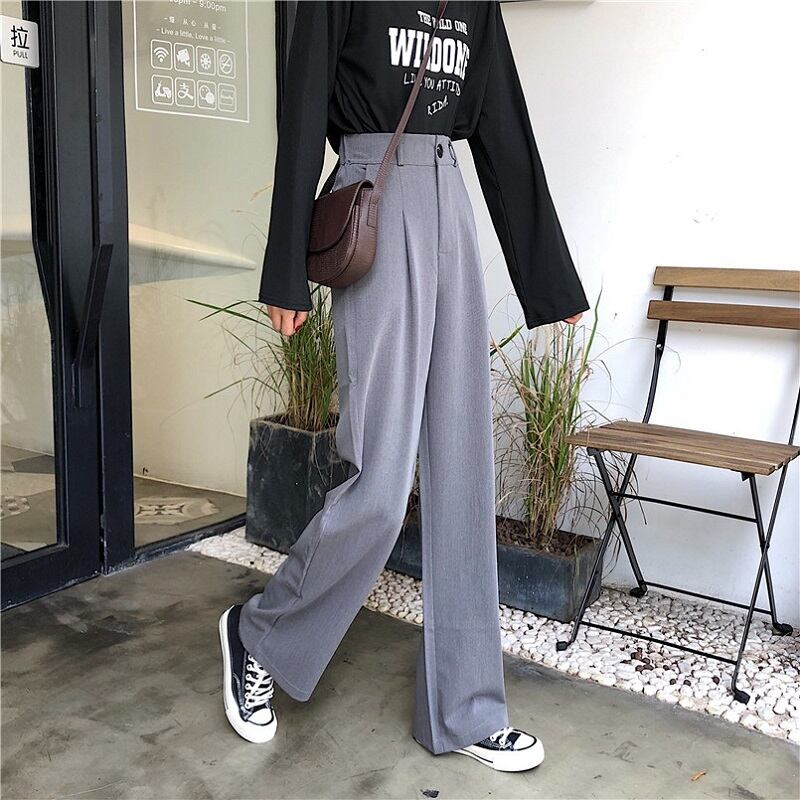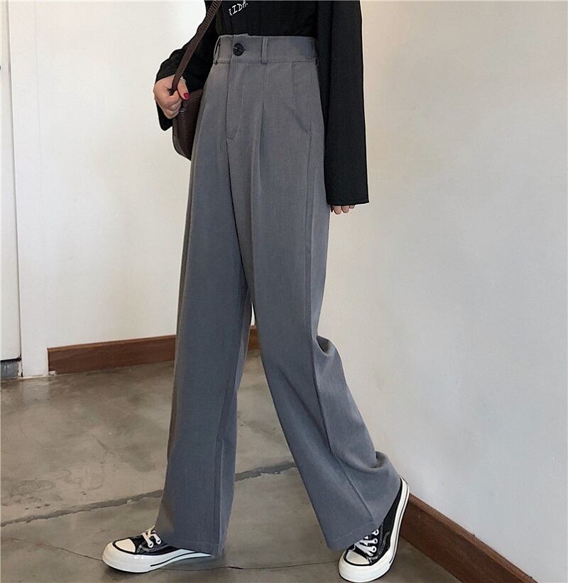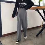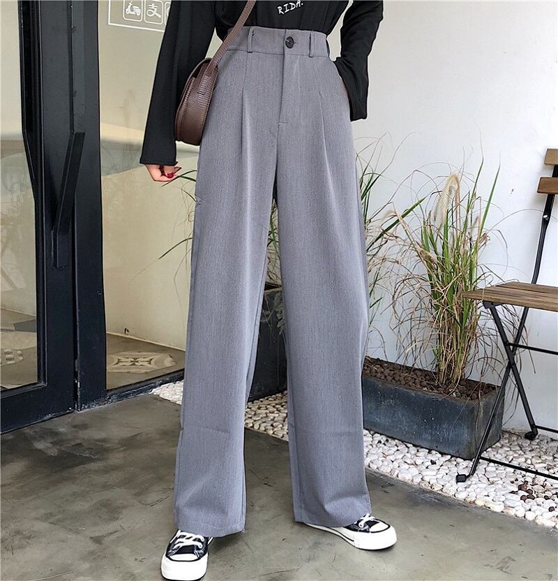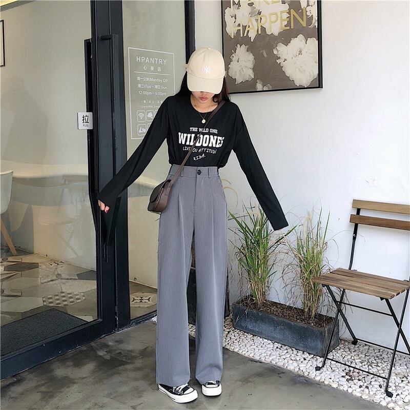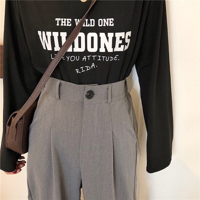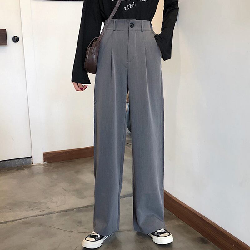全2色 カジュアルパンツ ワイドパンツ ハイウエスト 無地 ゆったり きれいめ レトロ カジュアル オフィス お出かけ ブラック グレー