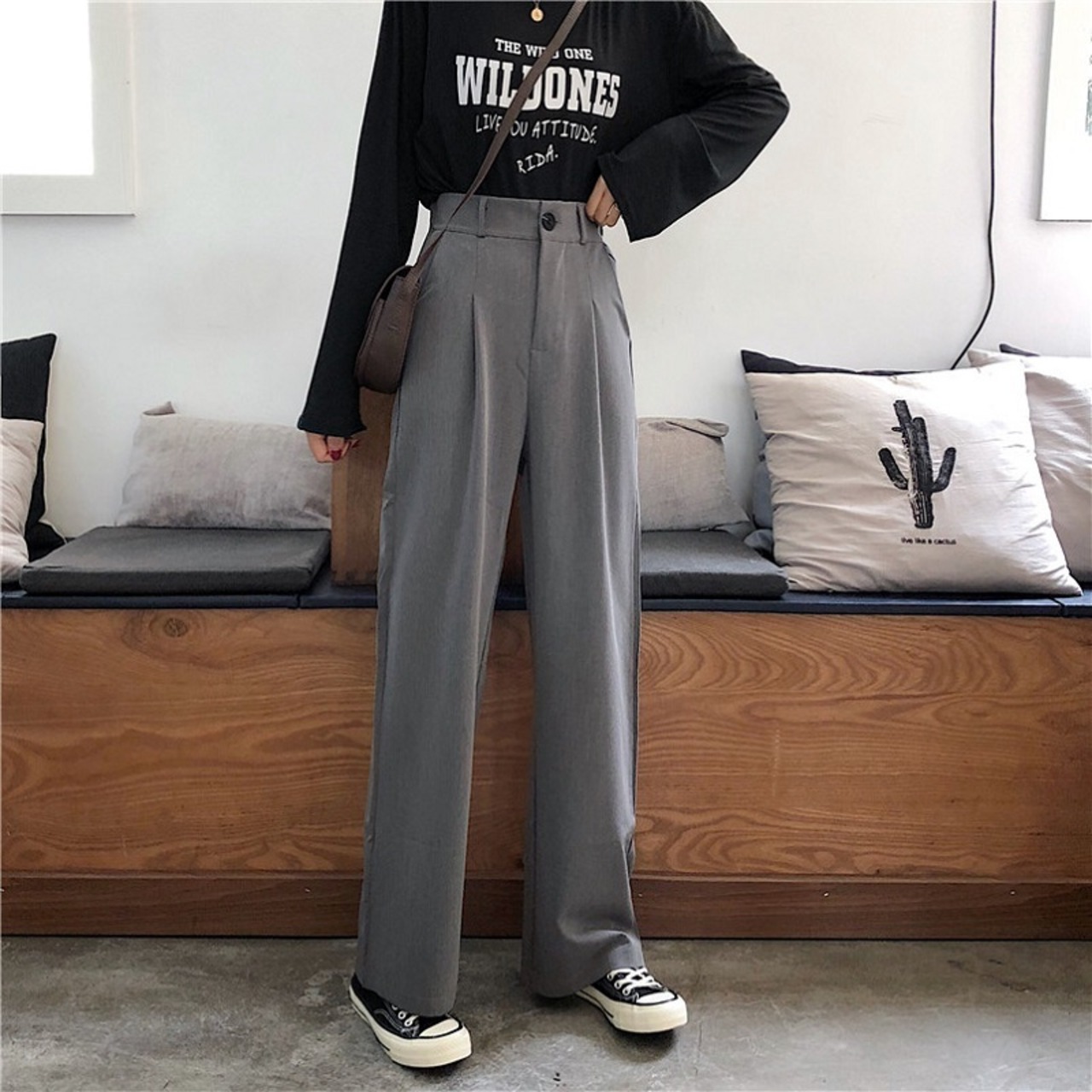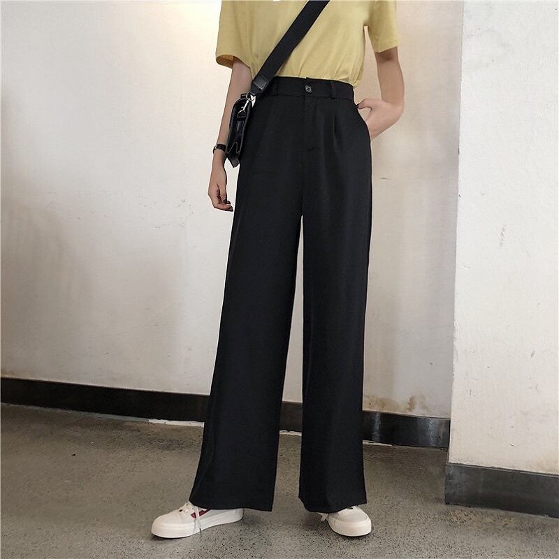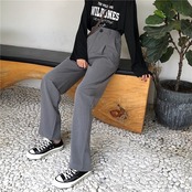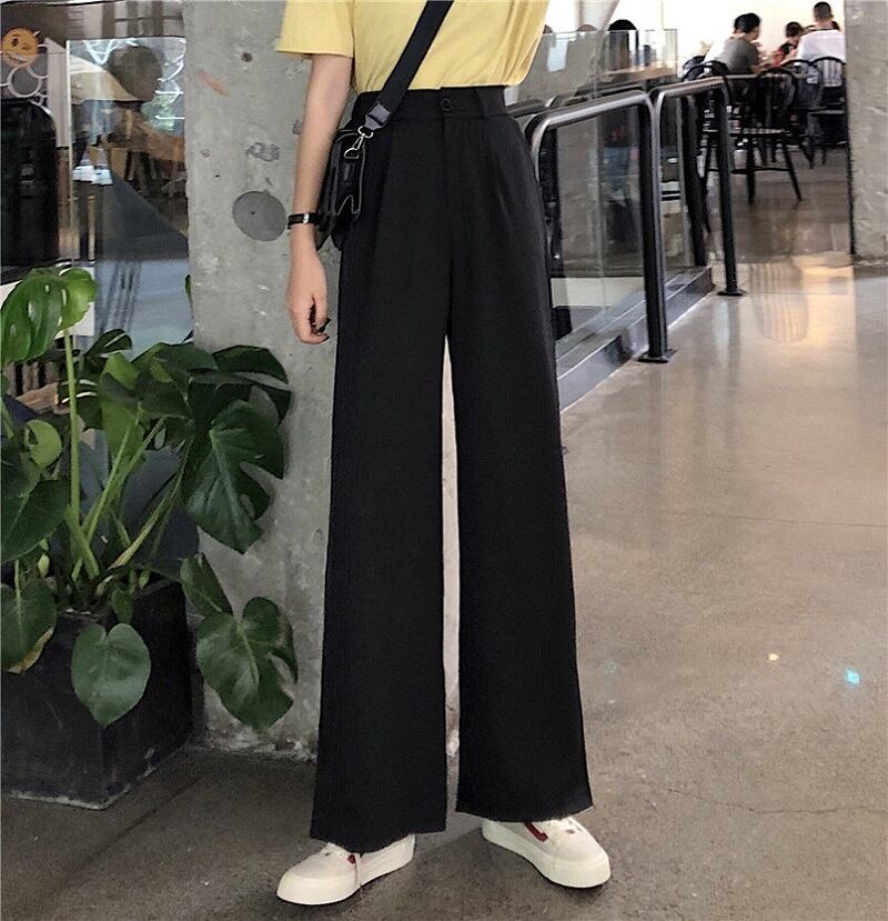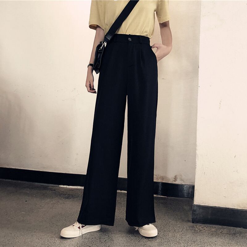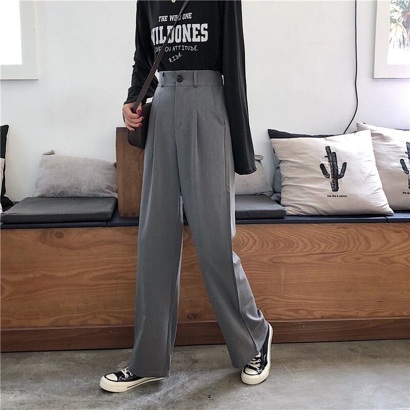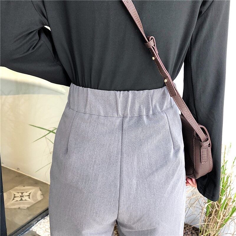 全2色 カジュアルパンツ ワイドパンツ ハイウエスト 無地 ゆったり きれいめ レトロ カジュアル オフィス お出かけ ブラック グレー
