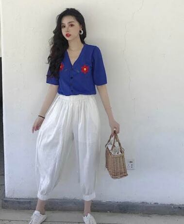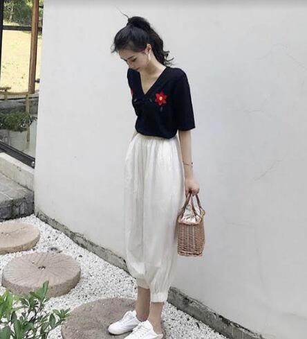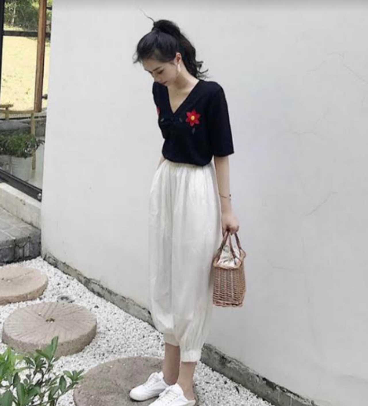 ブラックのトップス+ホワイトのパンツ/ブルーのトップス+ホワイトのパンツ/ホワイトのトップス+ブラックのパンツ