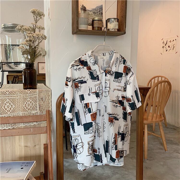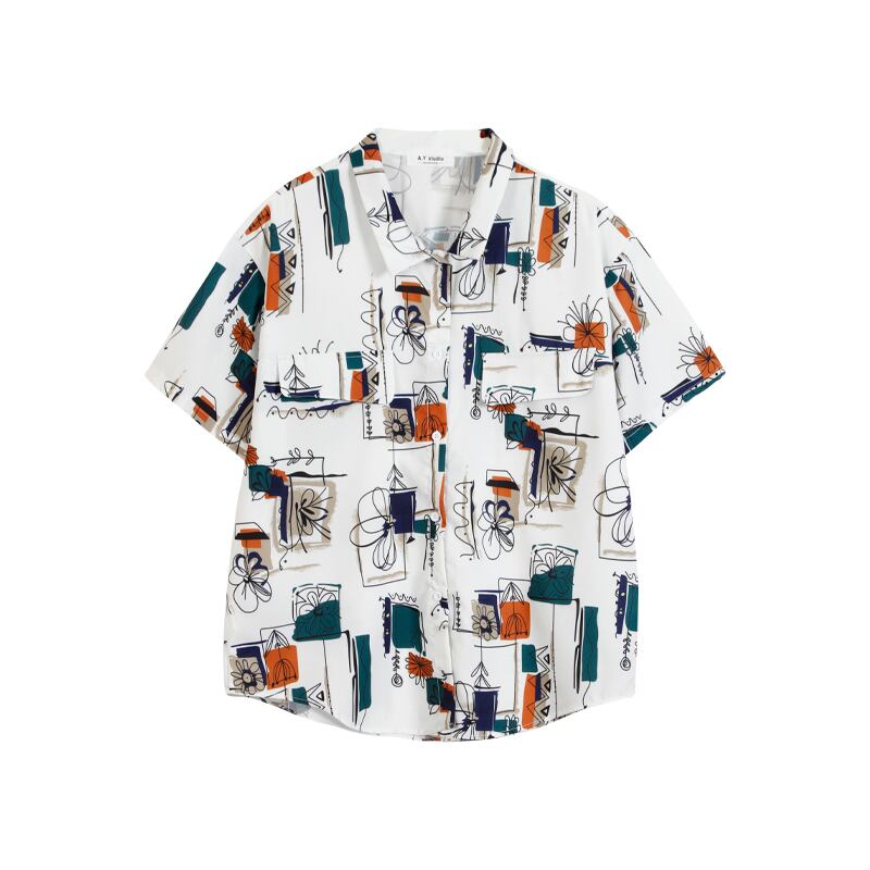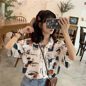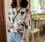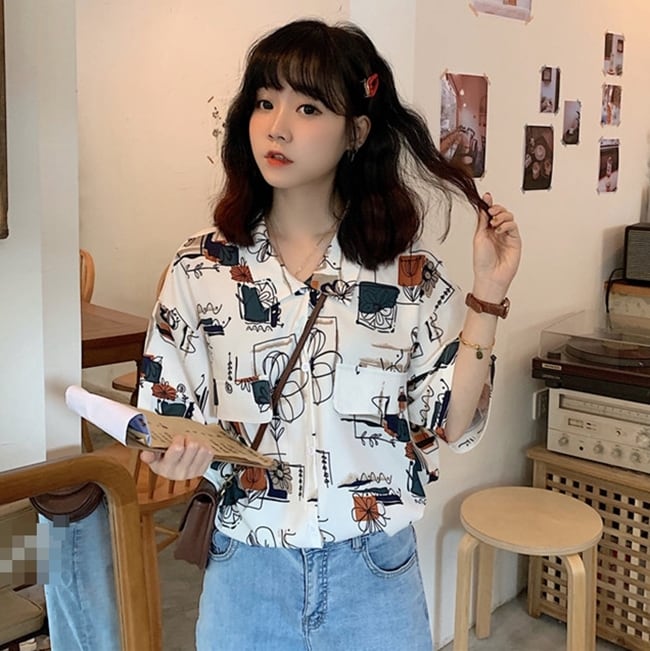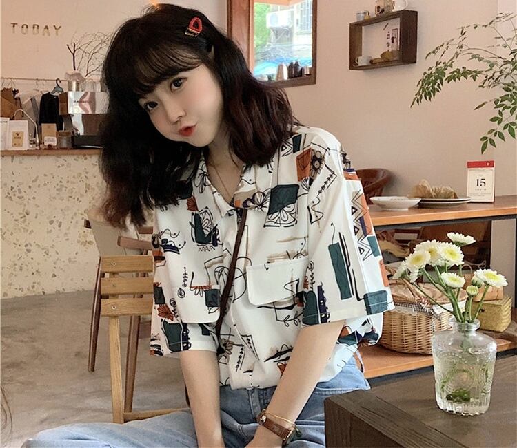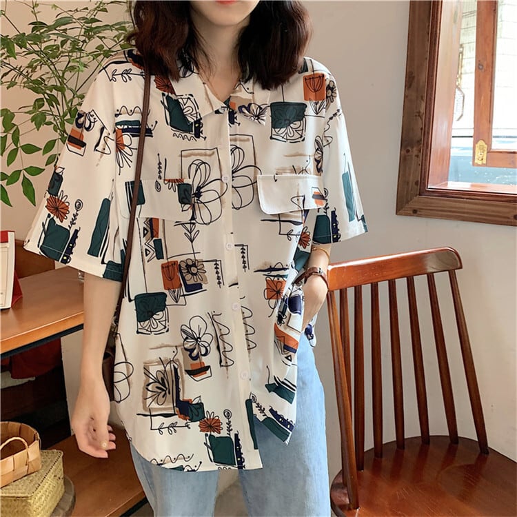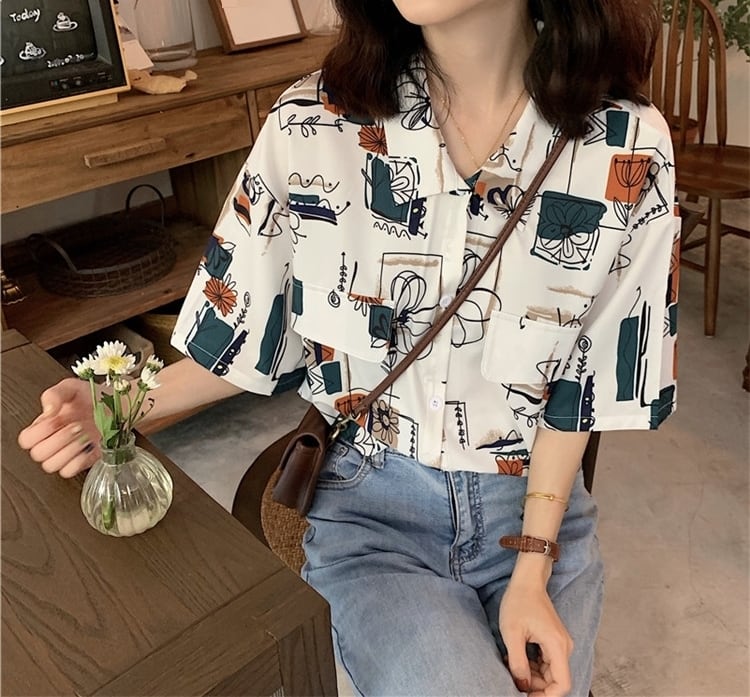 シャツ フロントボタン 柄 5分袖 ゆったり フェミニン 大人 カジュアル デイリー お出かけ おしゃれ レトロ ユニーク リゾート 韓国ファッション 春 夏