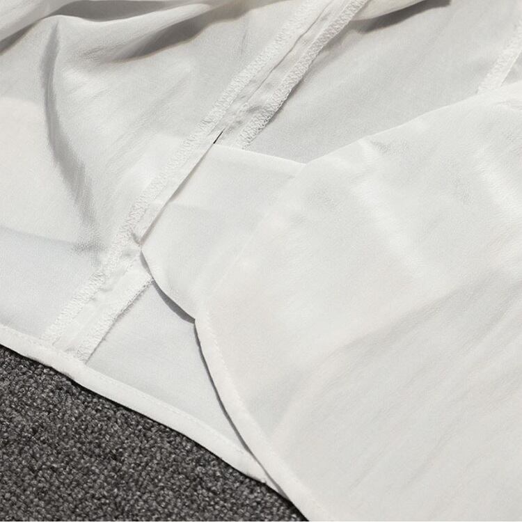 大きく開いた胸元とショート丈がセクシーなシフォンブラウスです。