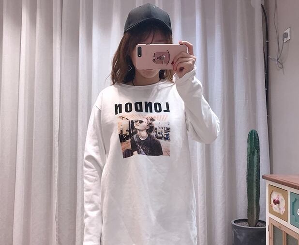 Tシャツ ロングTシャツ 長袖 ロゴ入り ラウンドネック ベーシック ゆったり オーバーサイズ カジュアル デイリー クール プリント 春
