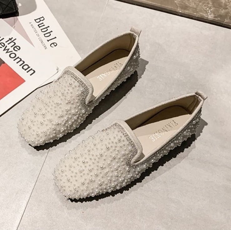全体にキラキラのストーンがあしらわれたフラットシューズ。