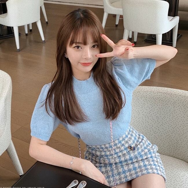 トップス ブラウス Tシャツ クルーネック スリム 半袖 フェミニン ガーリー 大人可愛い デート 上品 カジュアル シンプル デイリー 夏