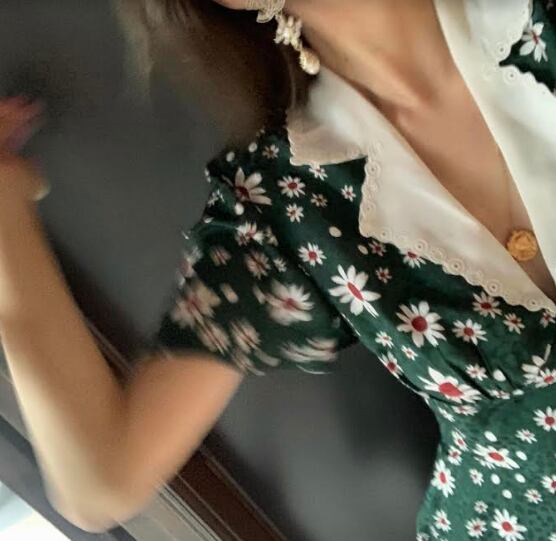 花柄が上品で大人っぽい印象のショート丈ワンピースです。