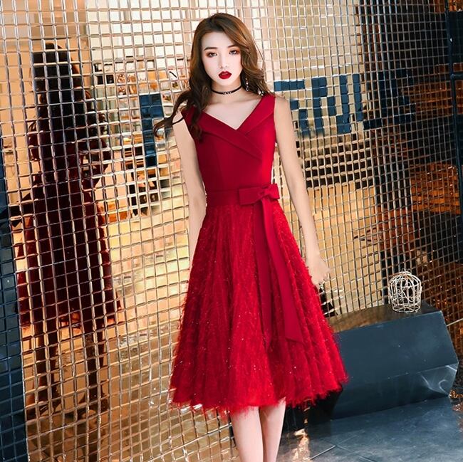 ドレス ワンピース ノースリーブ Vネック ウエストリボン ハイウエスト Aライン フレア ミディ丈 上品 エレガント 大人可愛い お呼ばれ 結婚式 パーティー ナイト オケージョン 夏