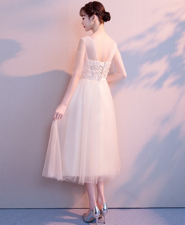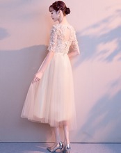 レースのディテールが美しいミモレ丈ドレスです。