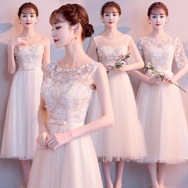 全4種 ドレス ワンピース ミモレ丈 チュール ハイウエスト ウエストリボン オフショルダー ノースリーブ レース 5分袖 ラウンドネック Aライン 上品 エレガント お呼ばれ パーティー 結婚式 春 夏