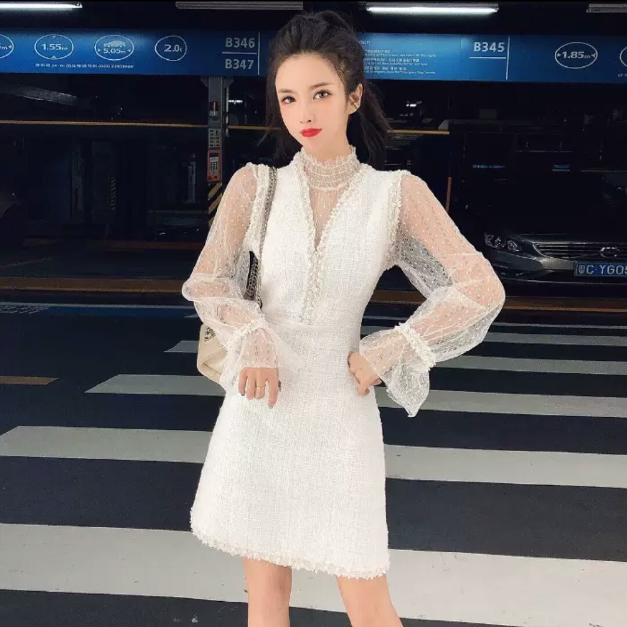 全2色 ツーピース ワンピース セットアップ メッシュ シャツ ベスト ワンピース ショート丈 ドレス お呼ばれ パーティー お出かけ お買い物 デート 女子会 通学 学生 通勤 韓国ファッション
