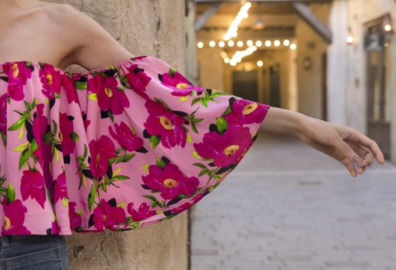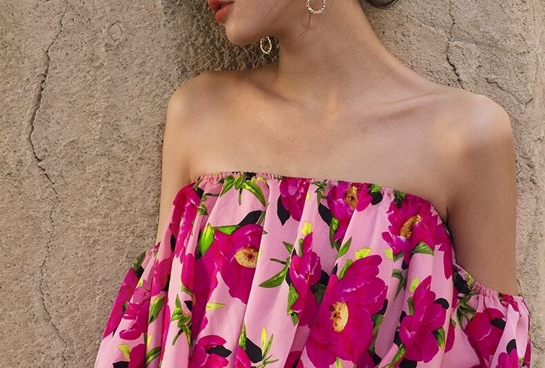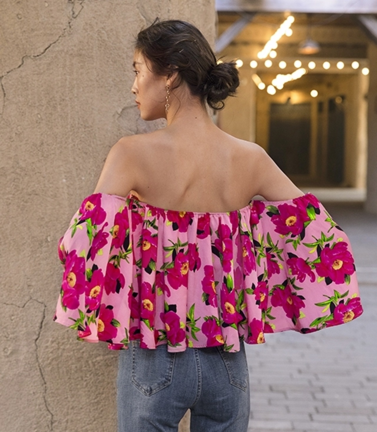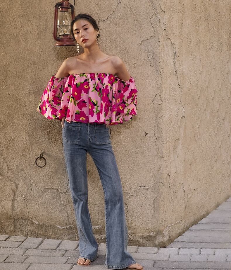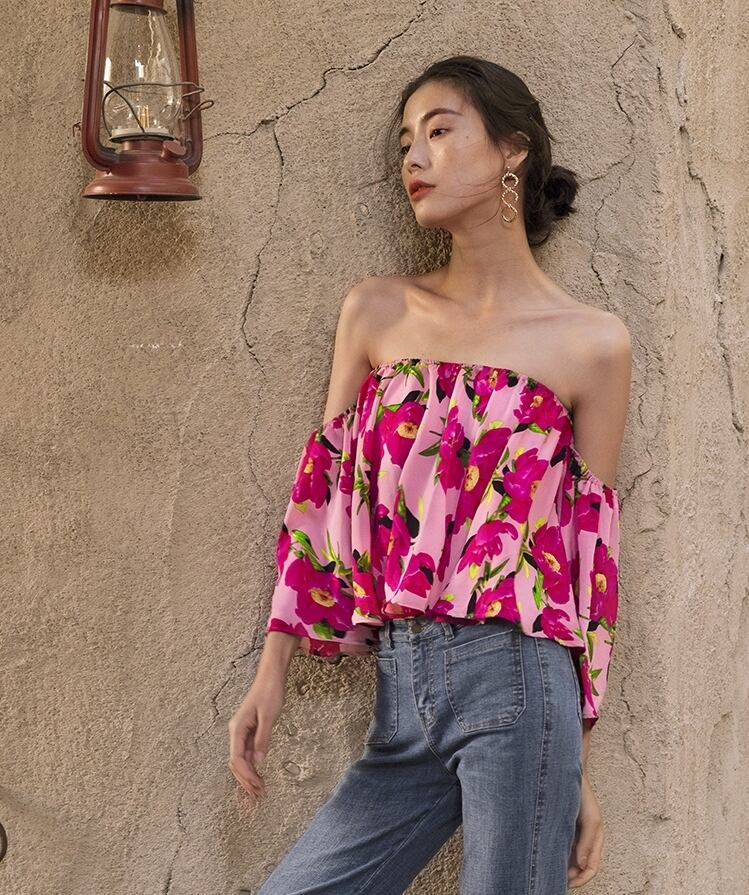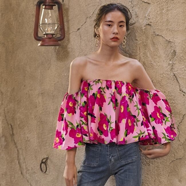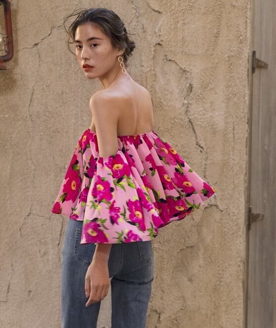 花柄 トップス ブラウス オフショルダー セクシー フレアスリーブ ゆったり ユニーク デート 大人可愛い リゾート カジュアル きれいめ トレンド 春 夏