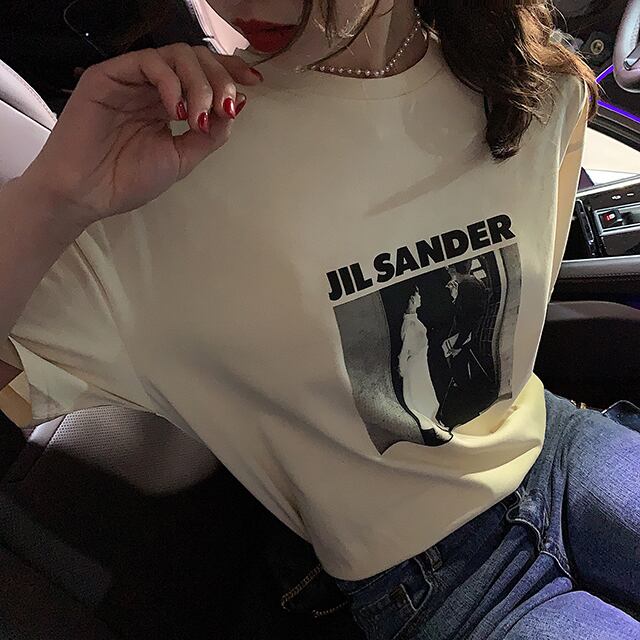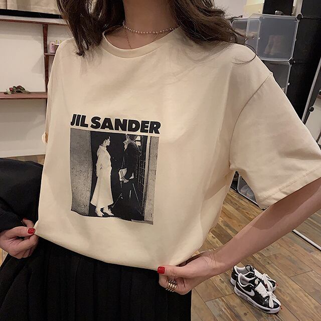 Tシャツ トップス ロゴ入り プリント シンプル クルーネック 半袖 ベーシック カジュアル デイリー ラフ お出かけ モノトーン 春 夏
