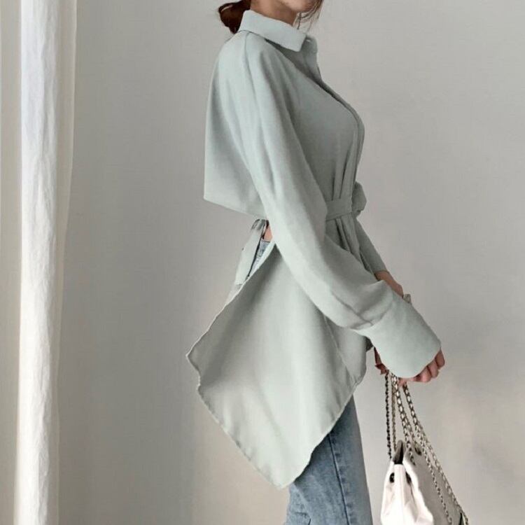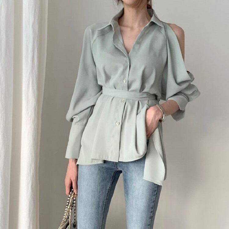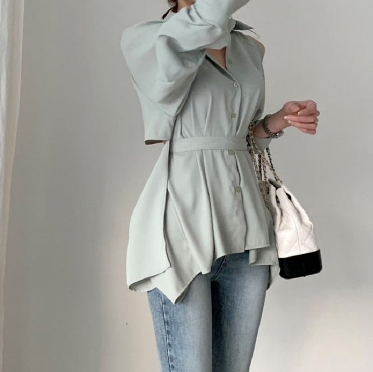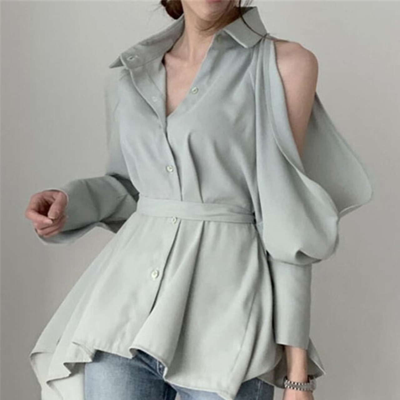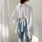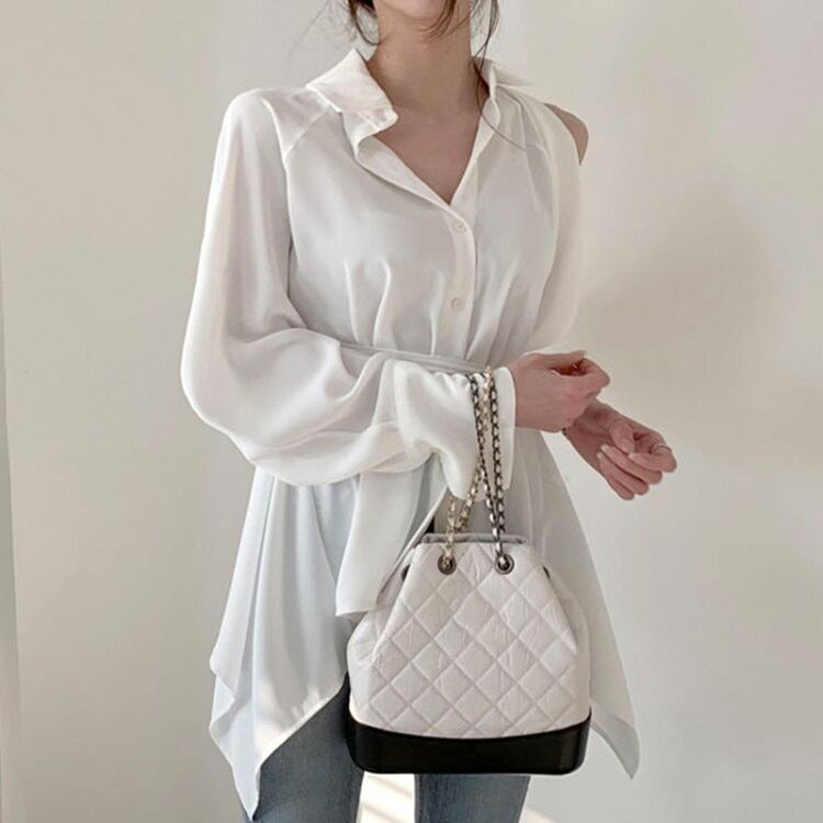 アシンメトリーデザインがセクシーさを際立たせるブラウス。
