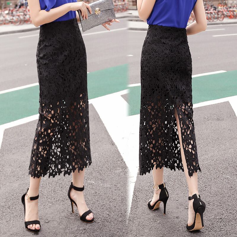 スカート レース シースルー ミモレ丈 花柄 ハイウエスト タイト スリム バックスリット カジュアル きれいめ 上品 大人 エレガント 春 夏