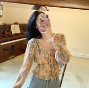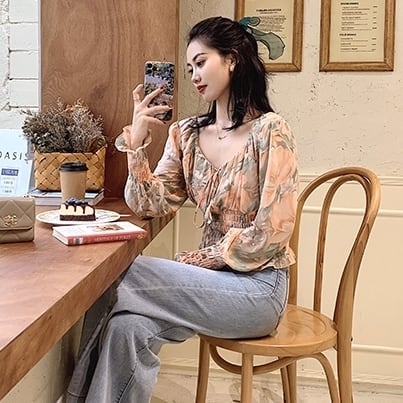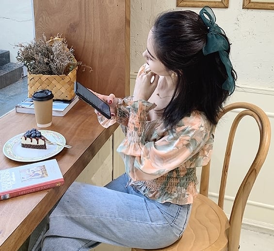 色使いが上品な花柄ブラウスです。