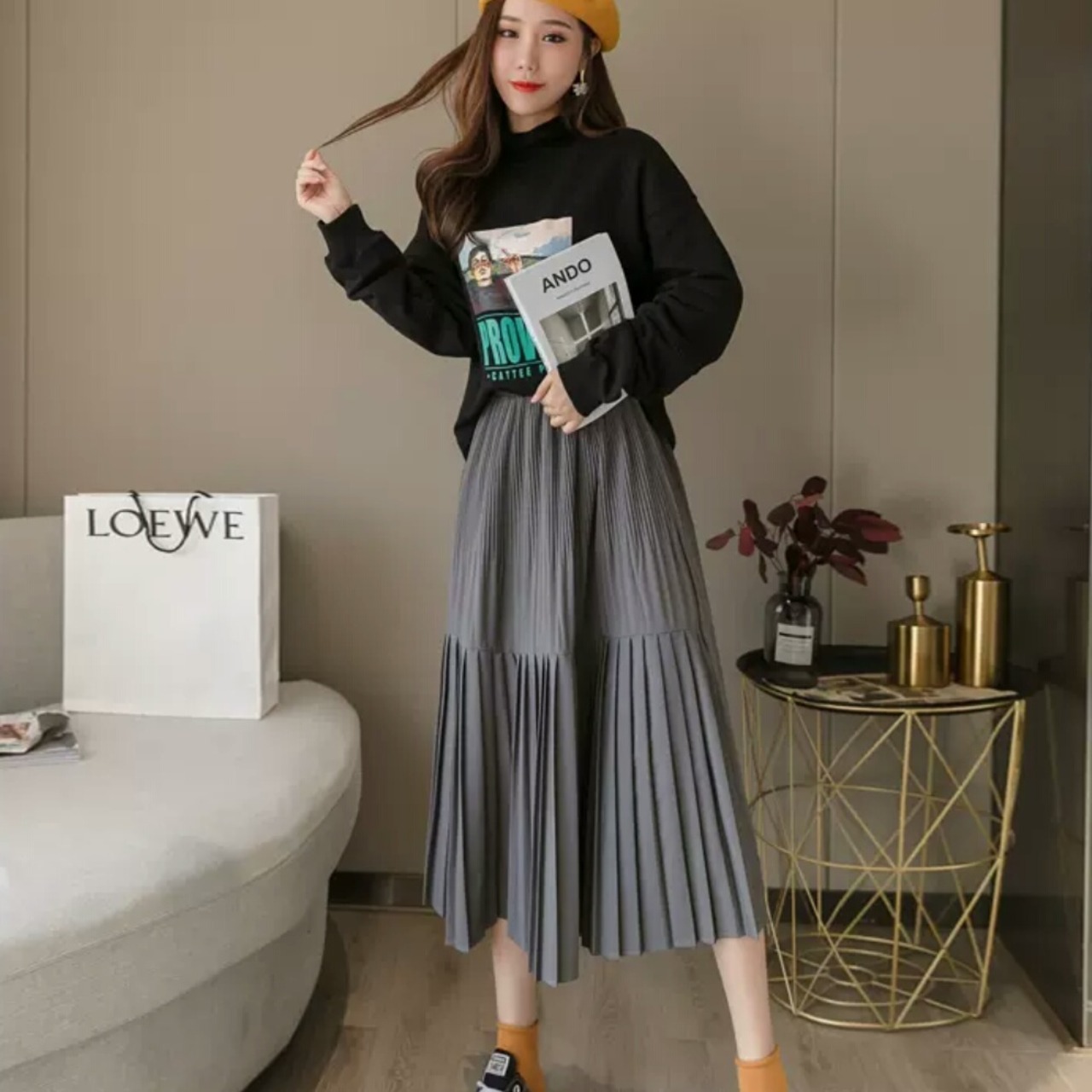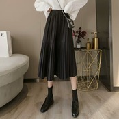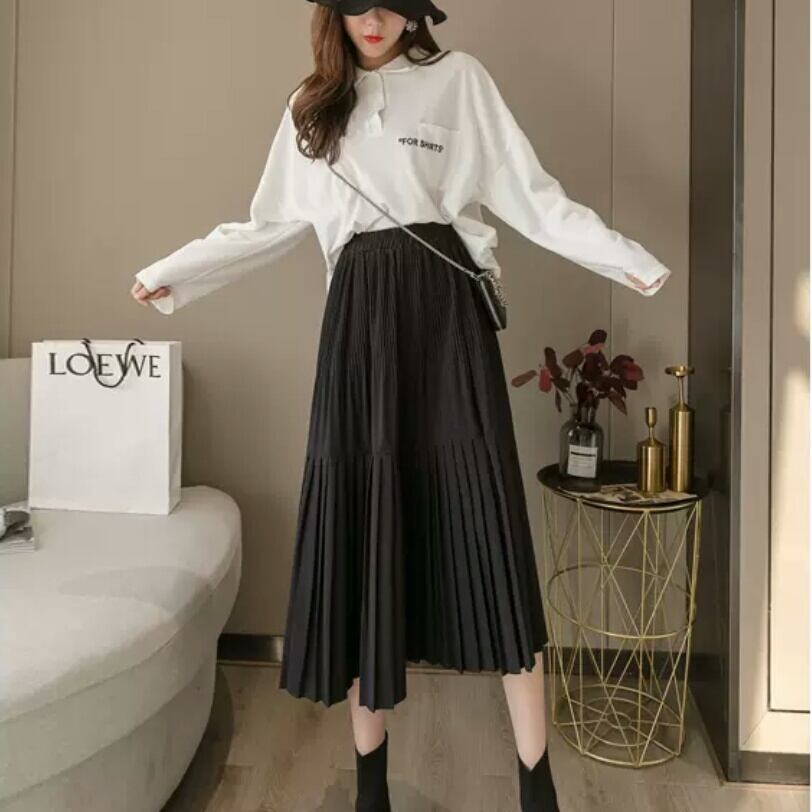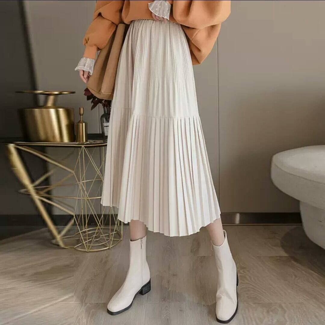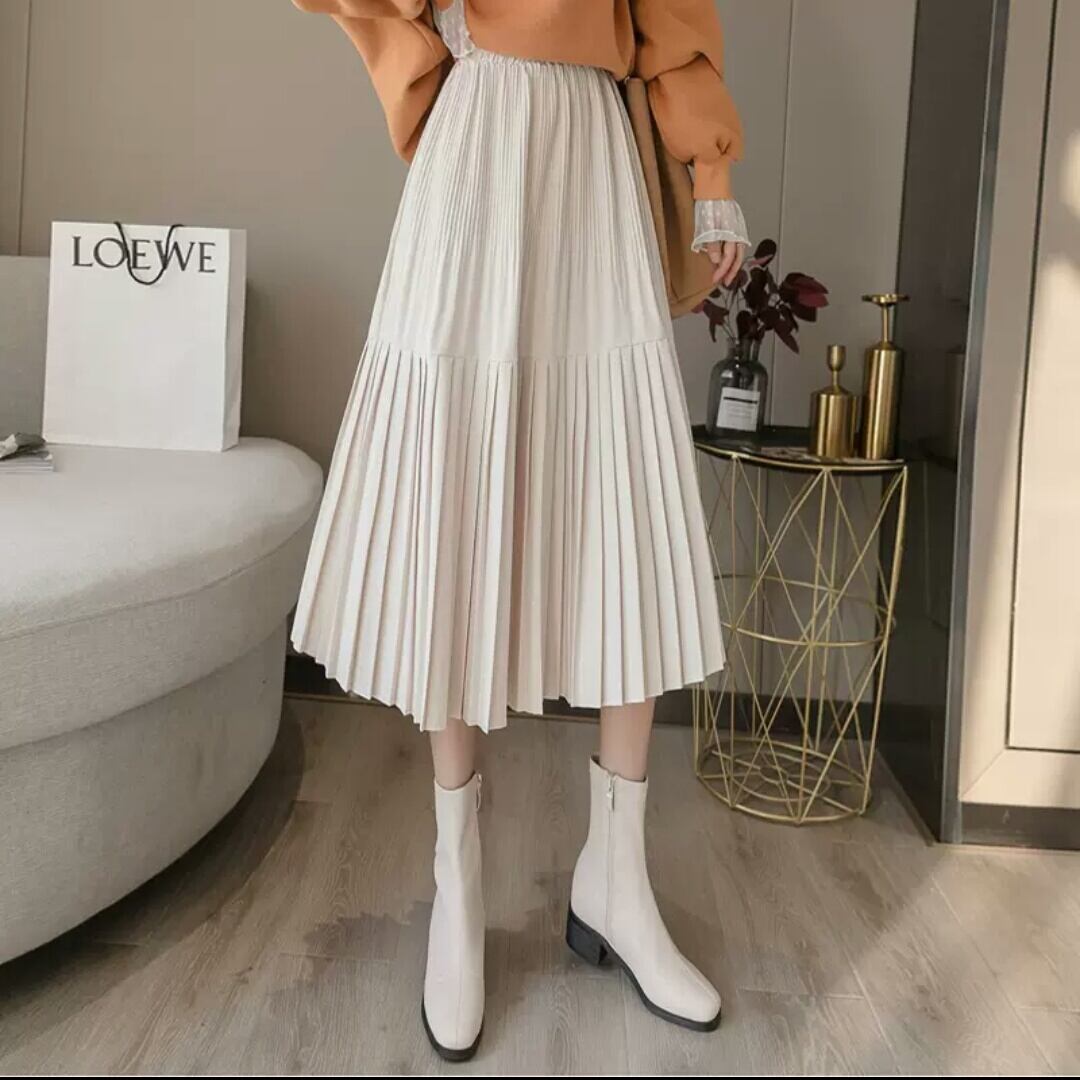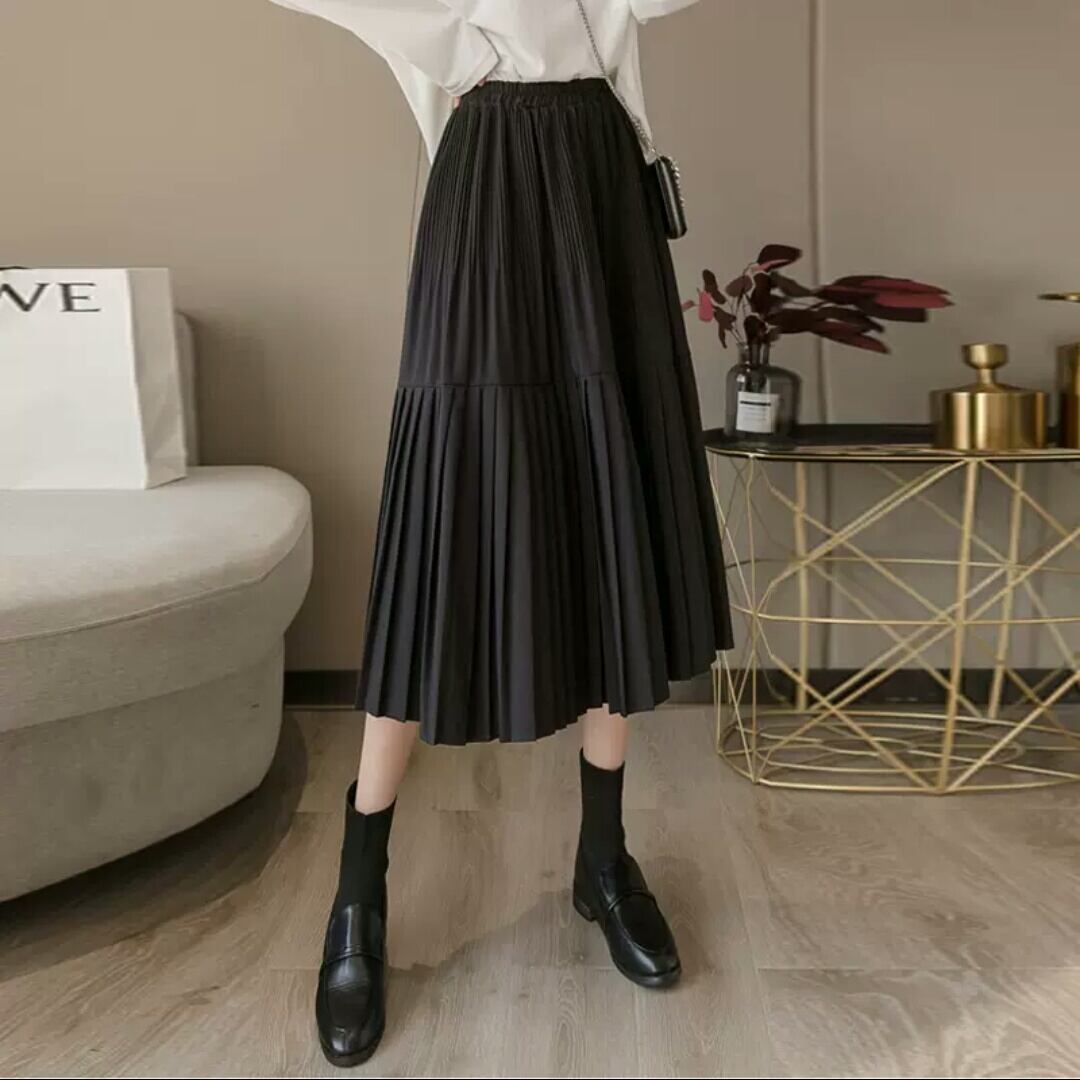 全3色 ハイウエスト シフォン プリーツ スカート ミモレ丈 無地 シンプル 大人 カジュアル キレイめ 可愛い お出かけ お買い物 デート 女子会 通学 学生 通勤 韓国ファッション