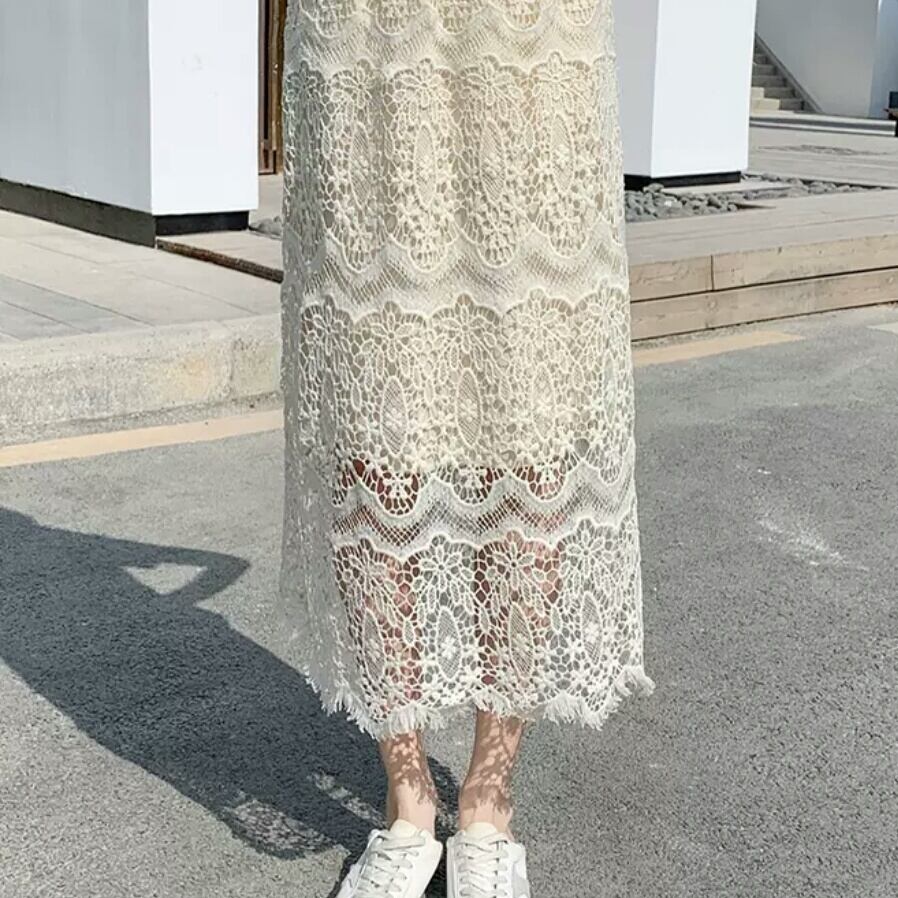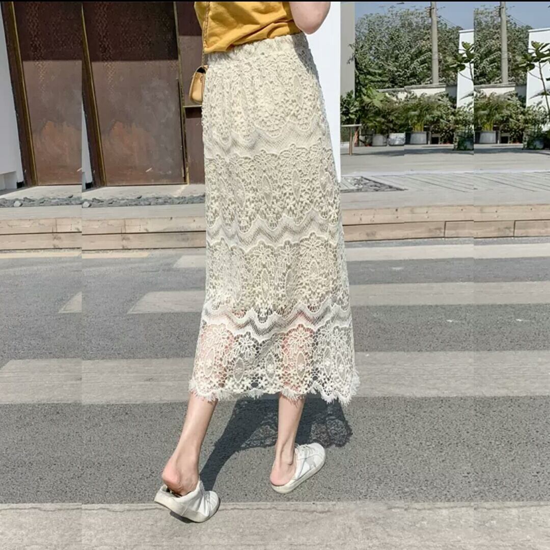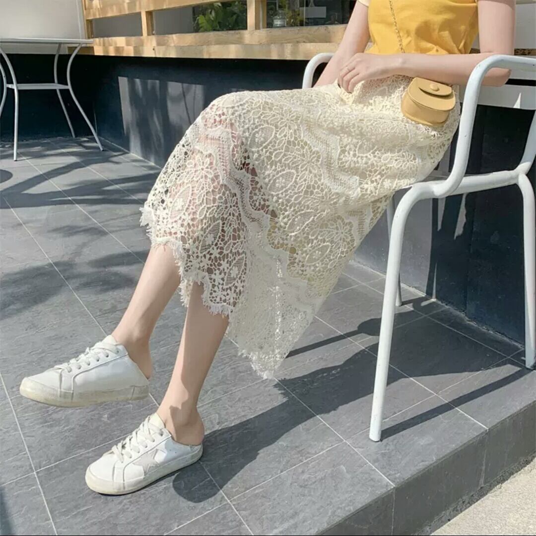ハイウエスト レース Aライン スカート シンプル 大人 カジュアル キレイめ 可愛い 上品 お出かけ お買い物 デート 女子会 通学 学生 通勤 韓国ファッション