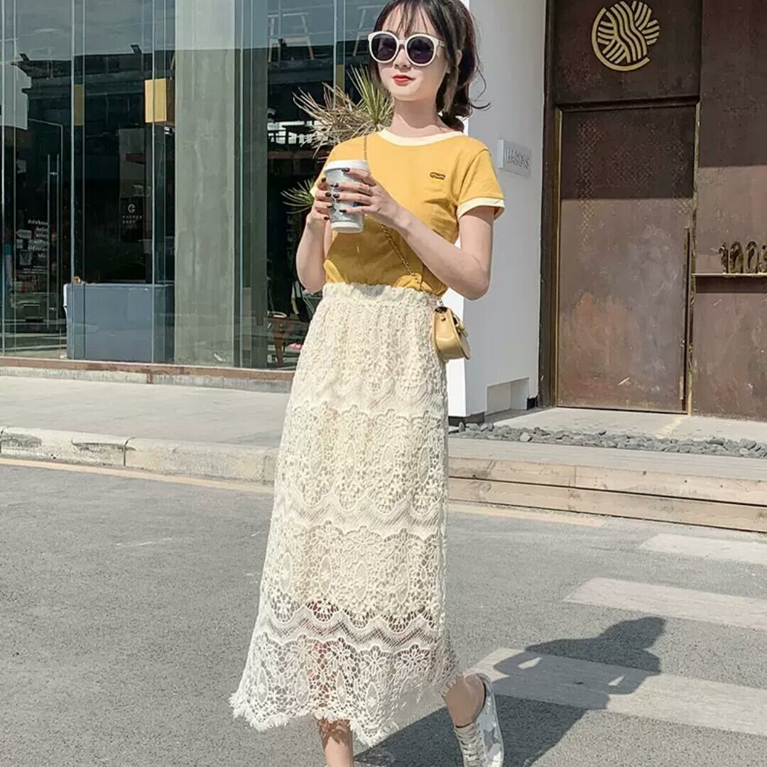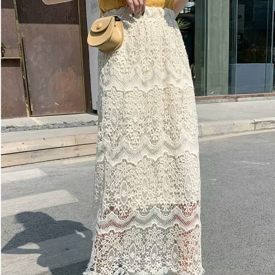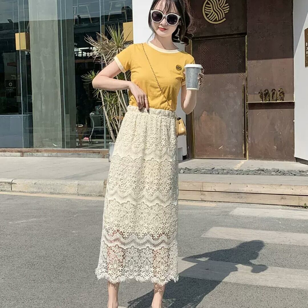 ハイウエスト レース Aライン スカート シンプル 大人 カジュアル キレイめ 可愛い 上品 お出かけ お買い物 デート 女子会 通学 学生 通勤 韓国ファッション