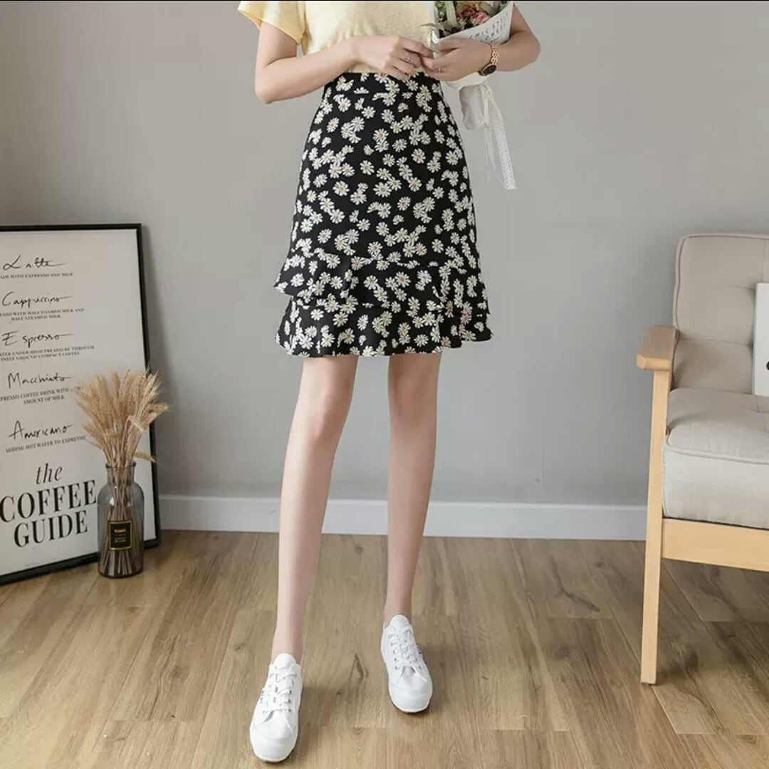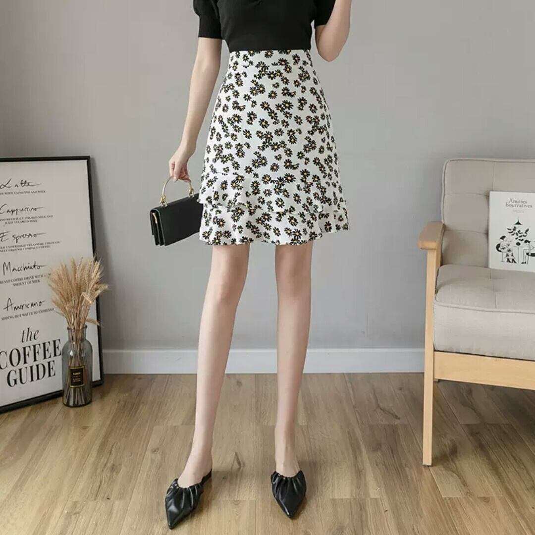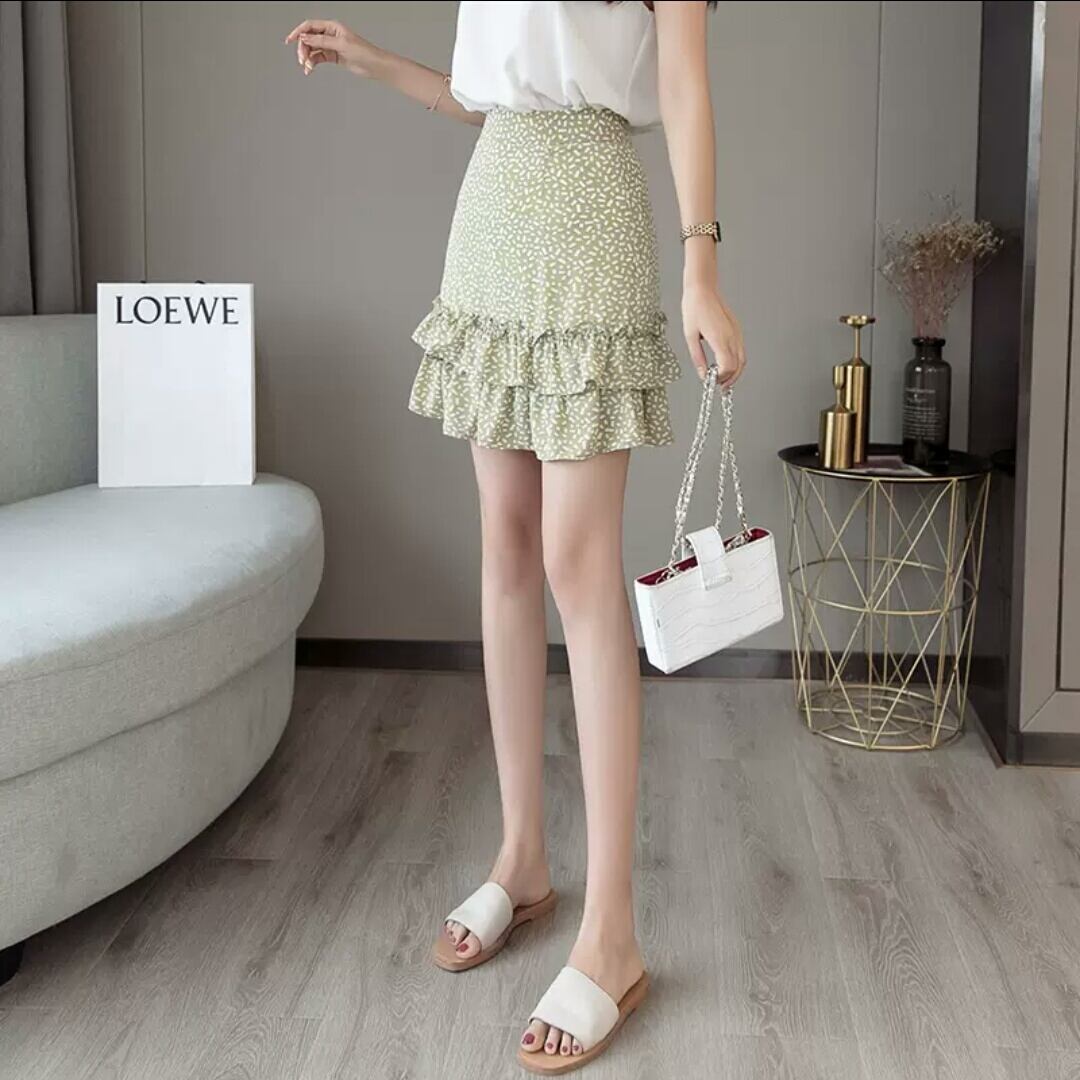 全4色 レトロ 花柄 ドット柄 ハイウエスト フィッシュテール スカート シフォン 大人 カジュアル キレイめ 可愛い お出かけ お買い物 デート 女子会 通学 学生 通勤 韓国ファッション