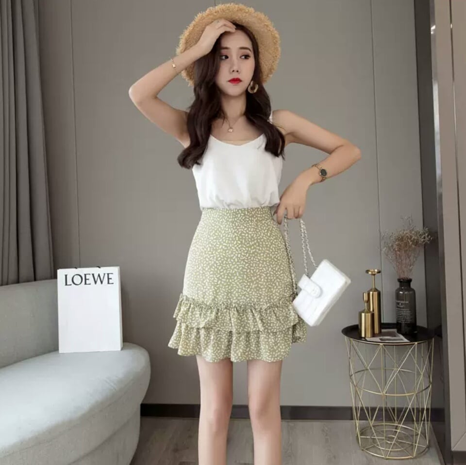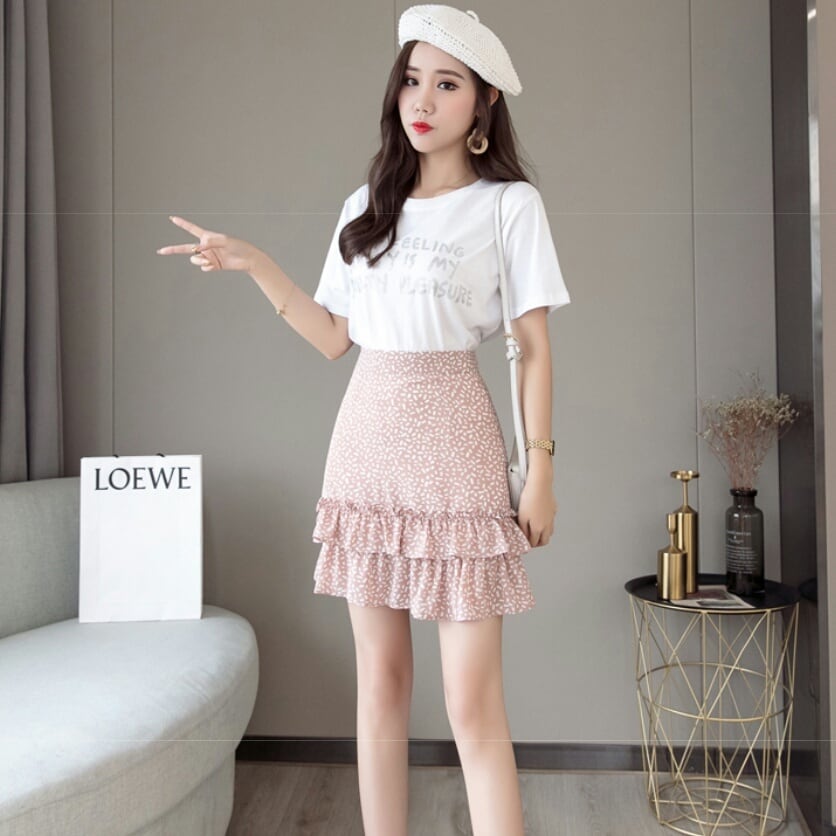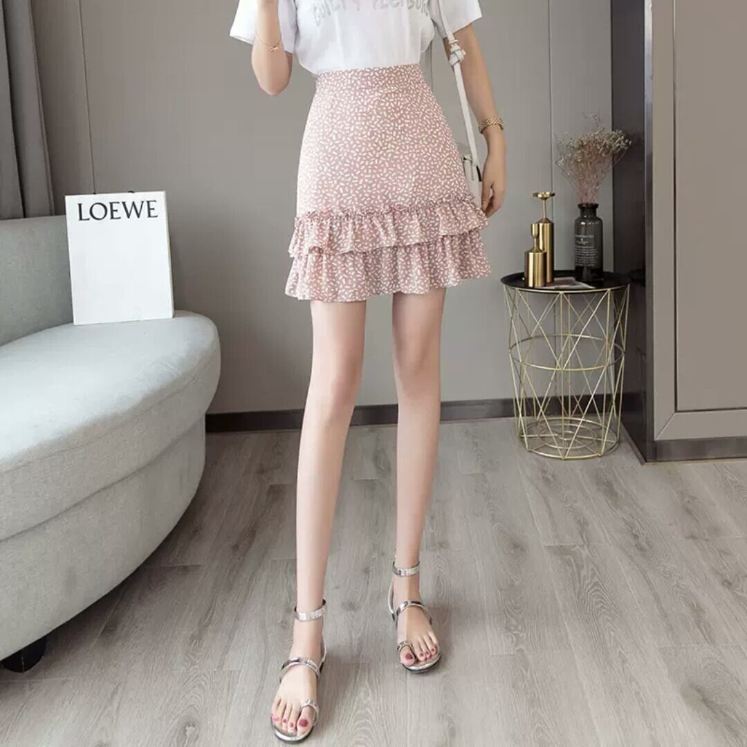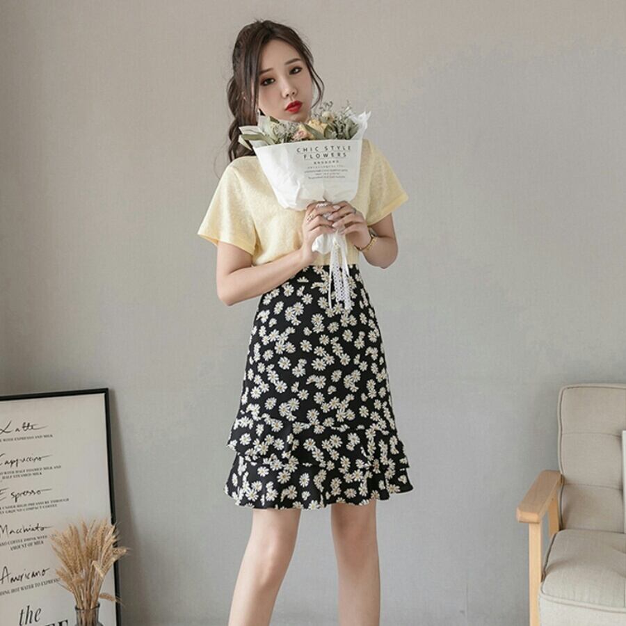 全4色 レトロ 花柄 ドット柄 ハイウエスト フィッシュテール スカート シフォン 大人 カジュアル キレイめ 可愛い お出かけ お買い物 デート 女子会 通学 学生 通勤 韓国ファッション